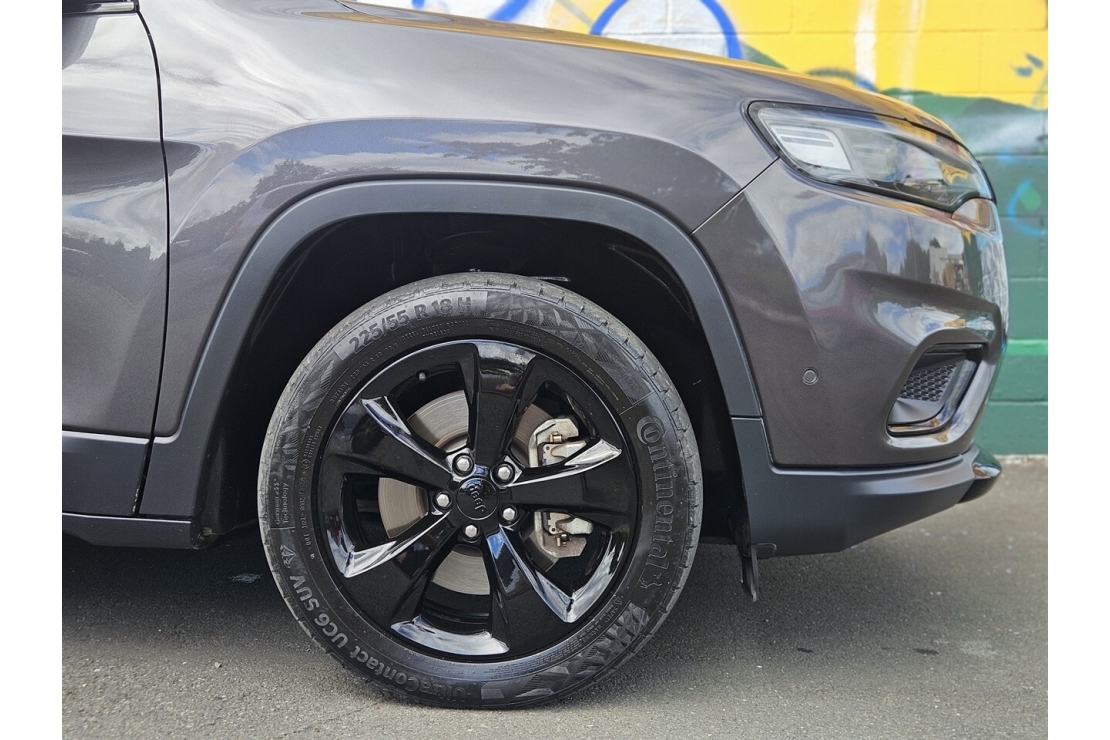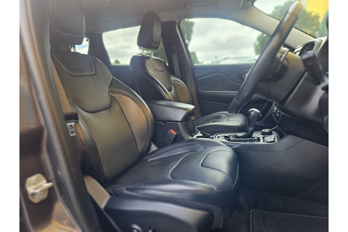Finished in metallic grey with a sharp custom blackout, this Cherokee sits on 18 inch black alloys and has a tough, sporty presence. With Jeeps selectable drive modes and intelligent four wheel drive system, it adapts easily to varying road and terrain conditions.