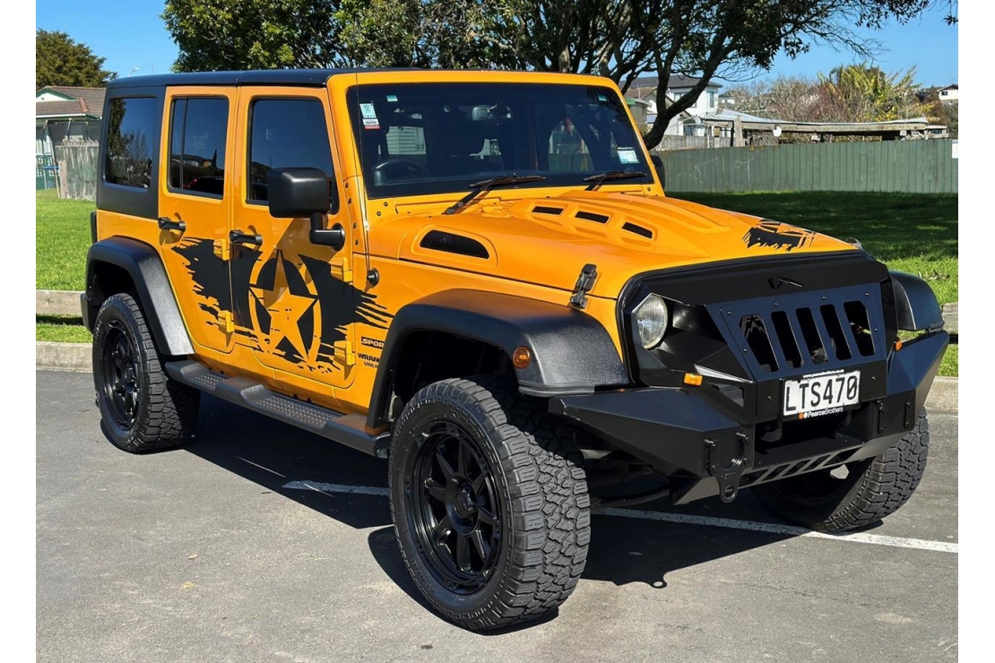 Finished with a custom tough look, this Wrangler sits on brand new 20" alloys with flared guards, a steel sports bumper and grille, and a vented sports bonnet for aggressive presence. Inside, youll find a multifunction steering wheel, Bluetooth connectivity, and Jeeps practical yet durable cabin. With removable roof and doors, heavy-duty suspension, and skid plates, this Unlimited is ready to go from city streets to wild off-road trails without missing a beat.