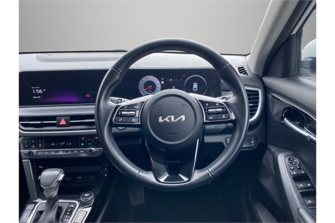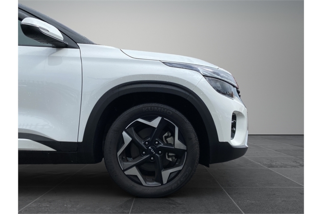 The 2023 Seltos maintains its distinctive and confident styling, now with refined elements that contribute to a more modern and premium look. The front features a redesigned Tiger Nose grille, sharper LED daytime running lights (DRLs), and updated headlights. The rear also received attention with new taillight graphics and a refreshed bumper design. The EX trim typically rides on 17-inch machined alloy wheels, offering a good balance of style and ride comfort. Roof rails are standard, adding to its SUV practicality.