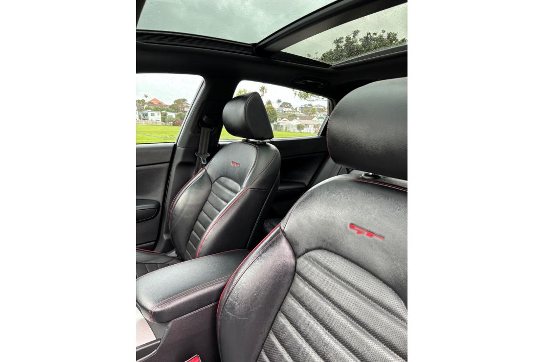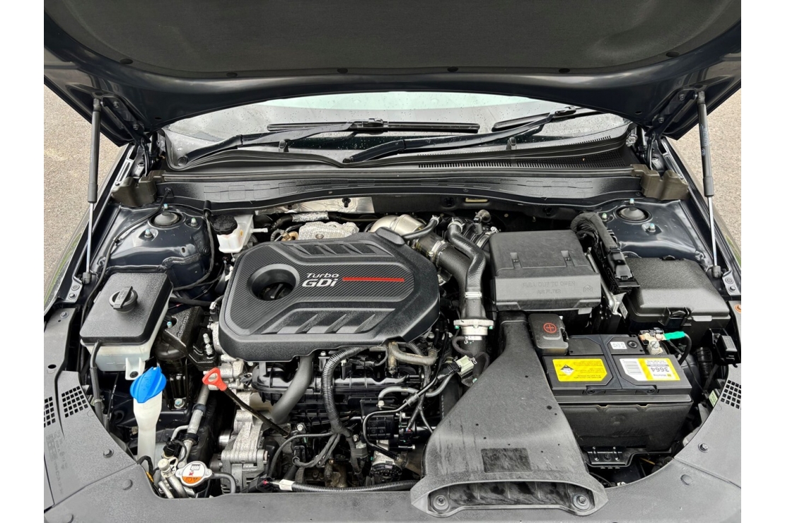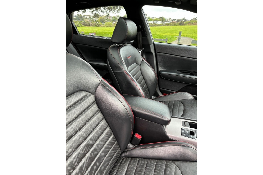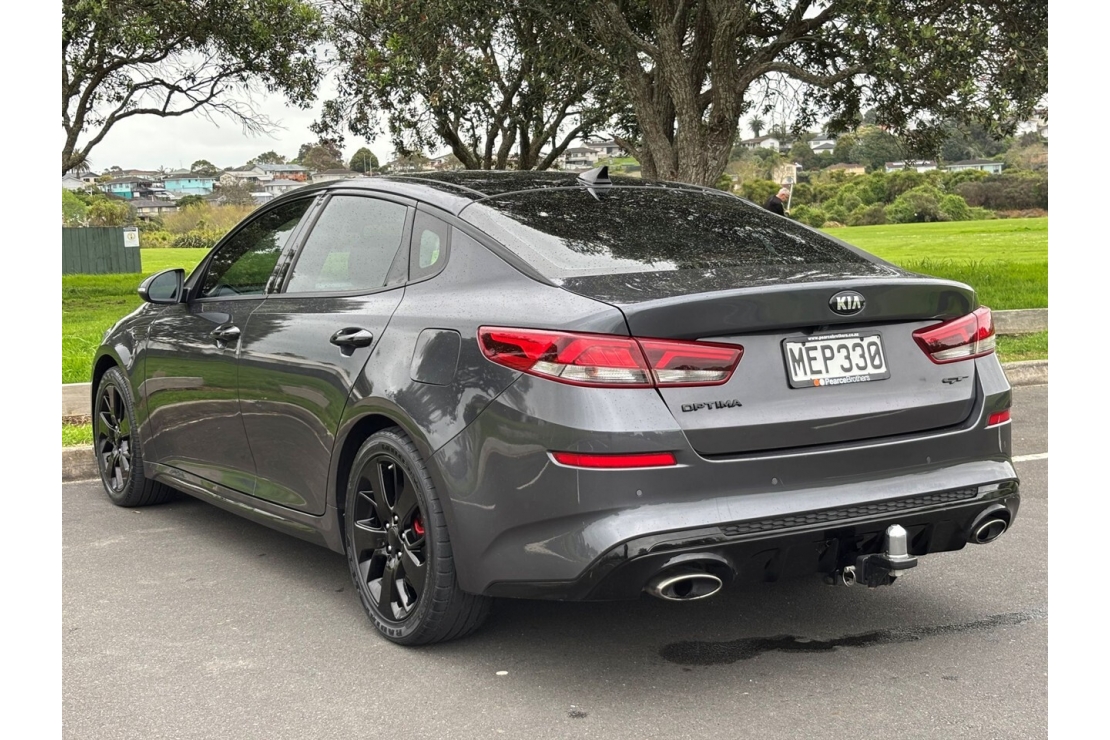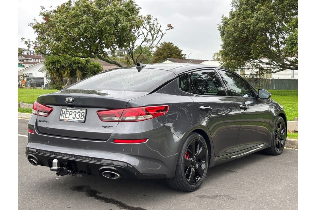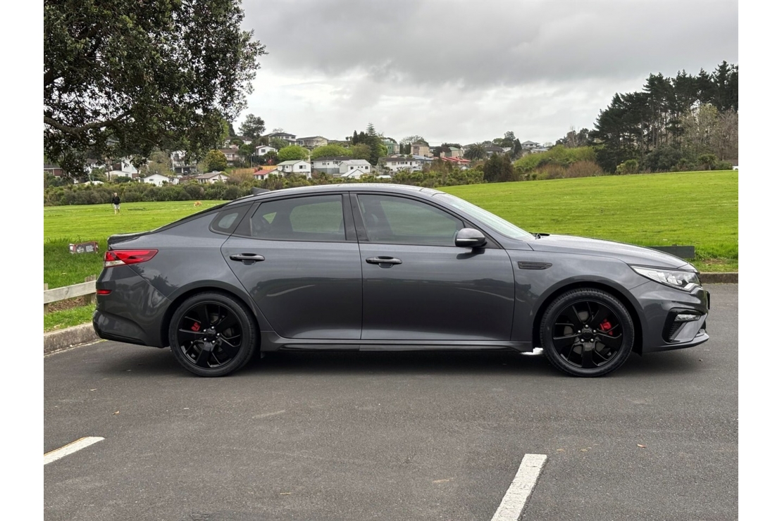 This 2019 Kia Optima GT is the ultimate blend of power, luxury, and technology. Finished in Metallic Grey with a custom blackout and sitting on sleek 18" alloys, this NZ New GT model is powered by a refined 2.0L turbocharged petrol engine delivering 180kW and 350Nm through a smooth 6-speed automatic transmission for effortless performance.