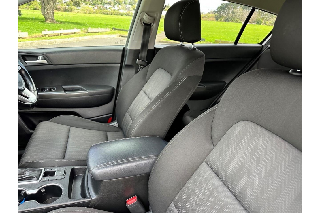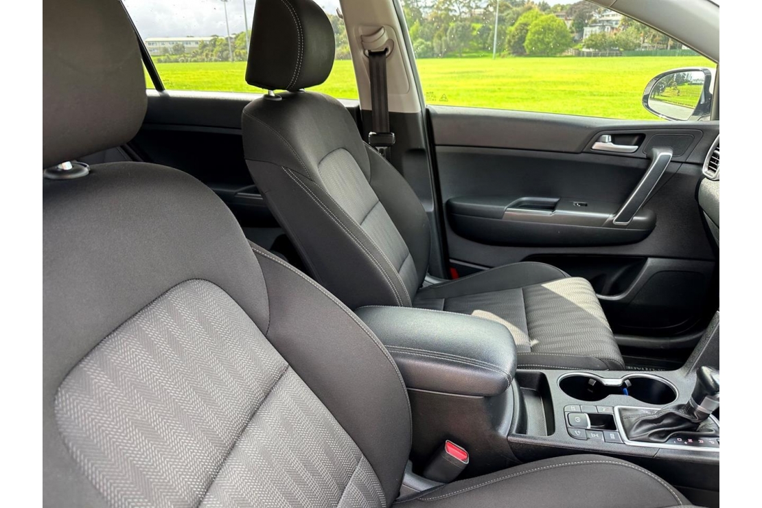 Inside, the Sportage impresses with modern comfort and convenience including keyless entry and push-button start, cruise control, reversing camera, rear parking sensors, and a multifunction steering wheel. The infotainment system is well equipped with a 7-inch touchscreen, Bluetooth streaming, Apple CarPlay and Android Auto, keeping you connected on every drive.