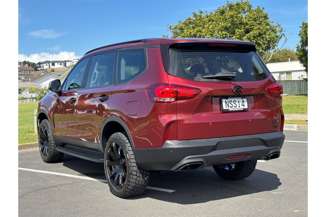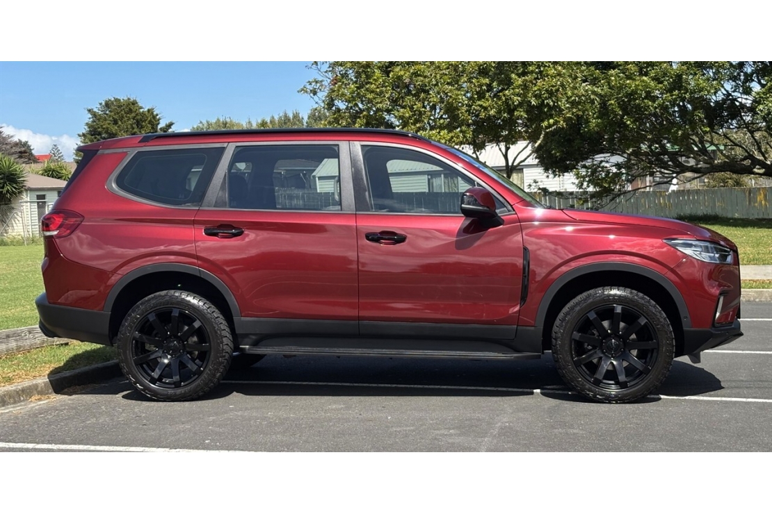 NZ new 2021 LDV D90 in metallic burgundy is a large and modern 7 seater SUV that delivers space, comfort, and strong road presence. Sitting on 20 inch alloy wheels with tinted windows and running boards