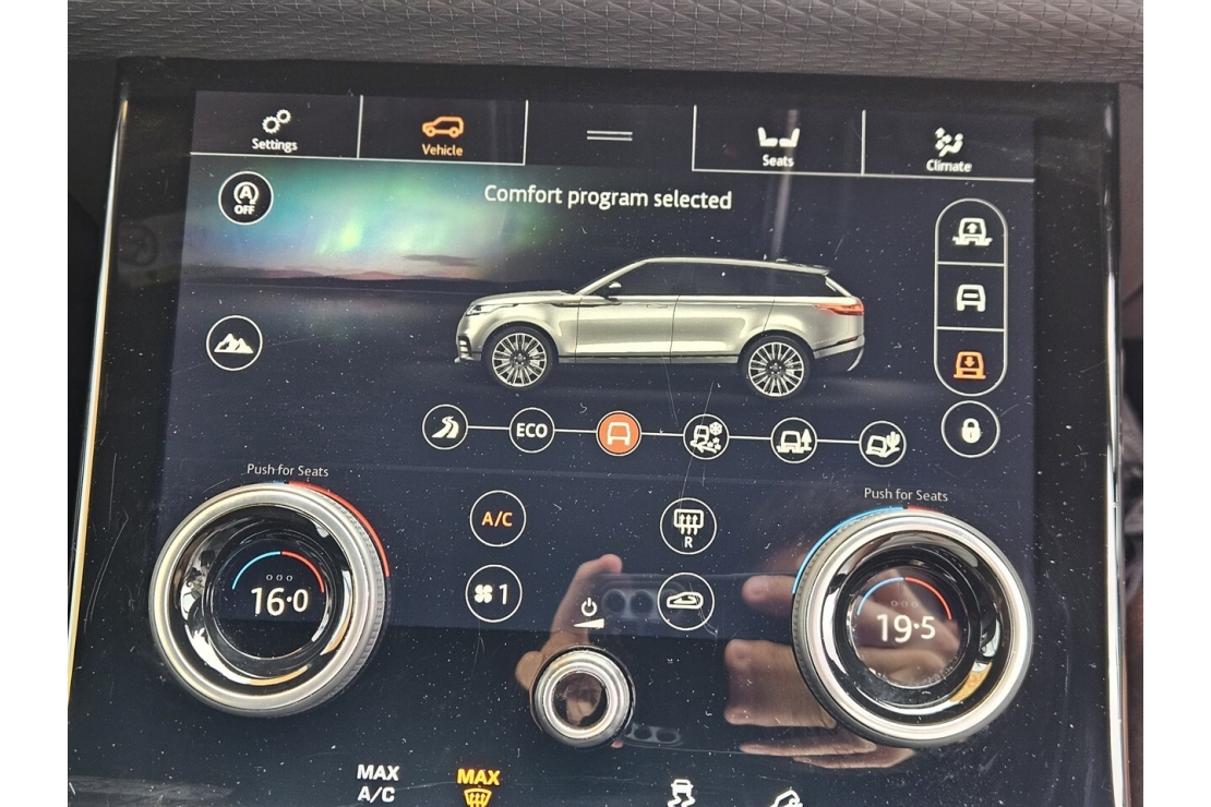 This Velar delivers a refined drive thanks to air suspension, selectable drive modes and premium ride comfort. Inside you will find a high end cabin with a full digital instrument cluster, ambient lighting and suede leather trim accents.