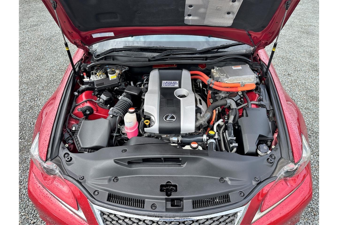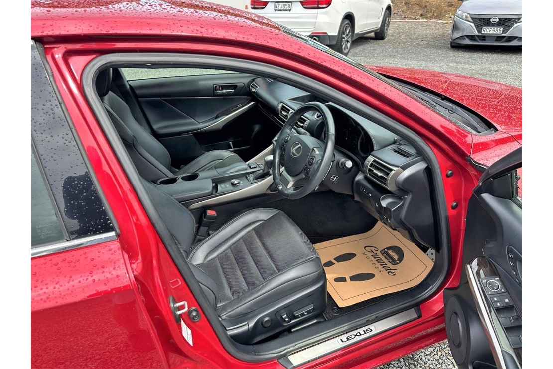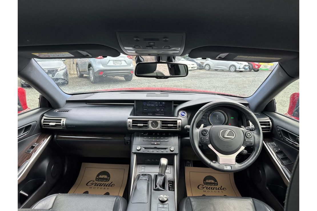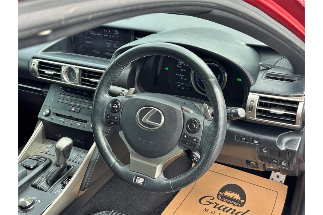 2014 Lexus IS 300h F-Sport hybrid in Red Wine colour with black leather interior.