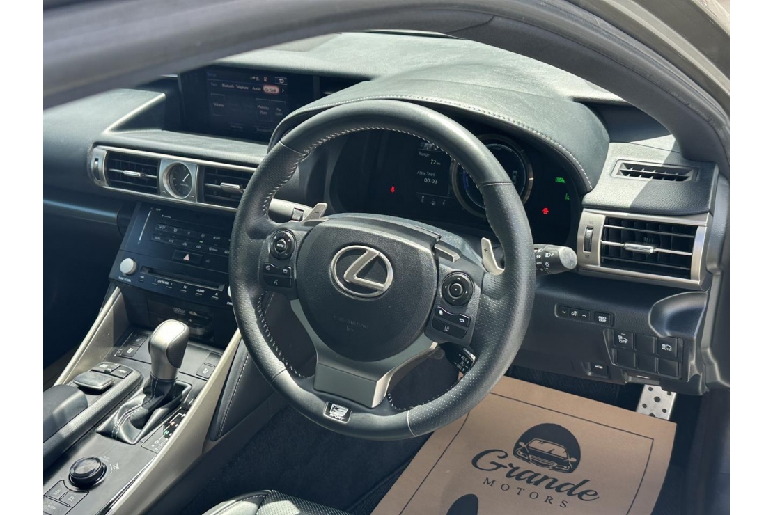 2013 Lexus IS 300h F-Sport hybrid in Grey Metallic colour with black leather interior.