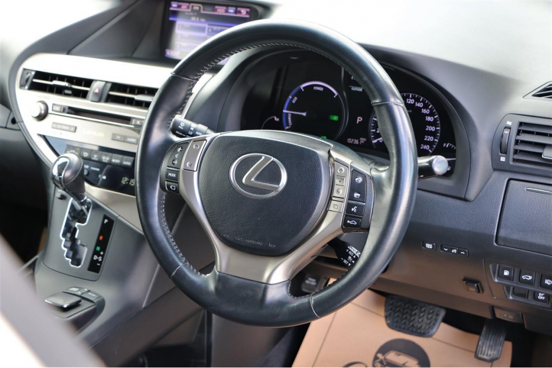2013 Lexus RX 450h L package in Pearl White colour with black leather seats.