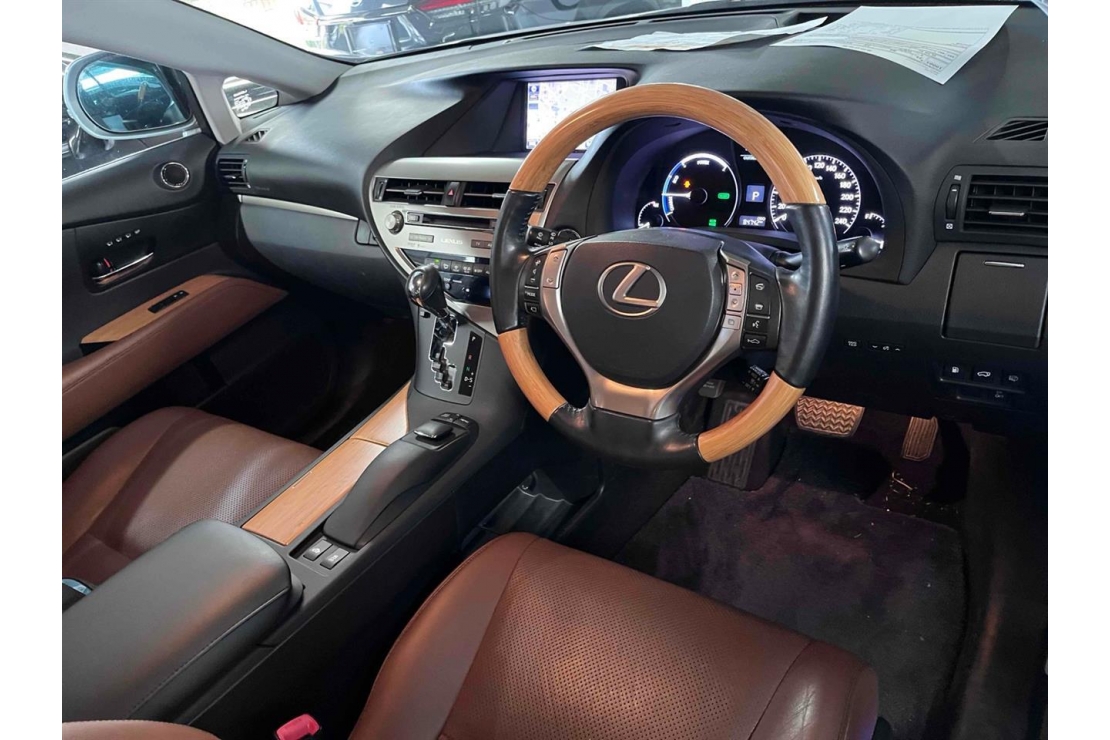 2013 Lexus RX 450h in silver colour with dark leather seats.