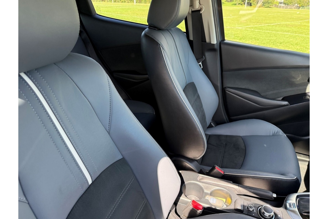 This New Zealand new 2022 Mazda 2 Limited is a sharp, high spec compact hatch finished in metallic grey with a custom blackout and sitting on stylish 16 inch alloy wheels. With just 32,000 kilometres, this is a super tidy and well cared for example.