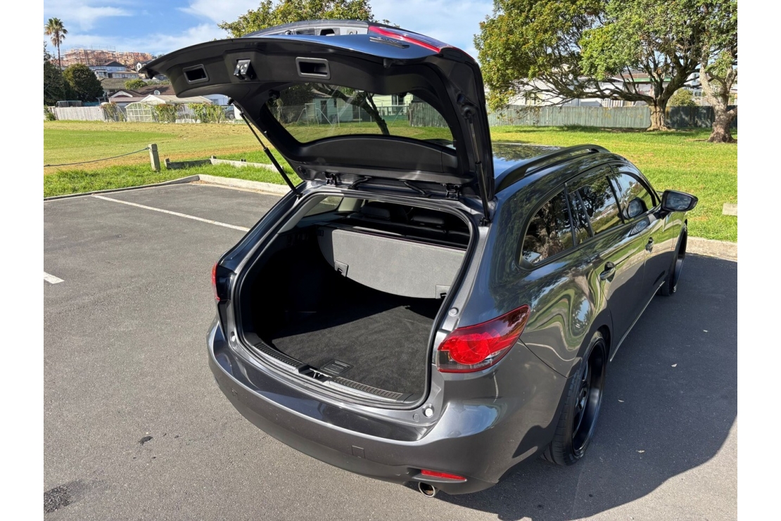 This 2013 Mazda Atenza in metallic grey is a sharp looking wagon that blends sporty styling with everyday practicality. Sitting on custom blackout 20 inch rims with matching blackout accents, this Atenza has strong road presence while still offering the comfort, reliability, and efficiency Mazda is known for.