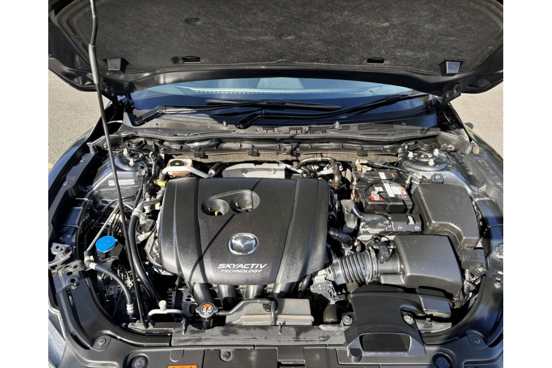 Powered by a responsive 2.5 litre Skyactiv petrol engine paired with a smooth 6 speed automatic transmission with Tiptronic manual shift mode, this sedan delivers excellent balance between performance and fuel economy. Mazda I Stop technology helps reduce fuel consumption in city driving, while lane assist adds extra confidence on the road. Inside, the black leather interior with red contrast stitching creates a sporty premium feel. Electric front seats, heated seats, dual zone climate air conditioning, and push button start provide comfort and convenience.