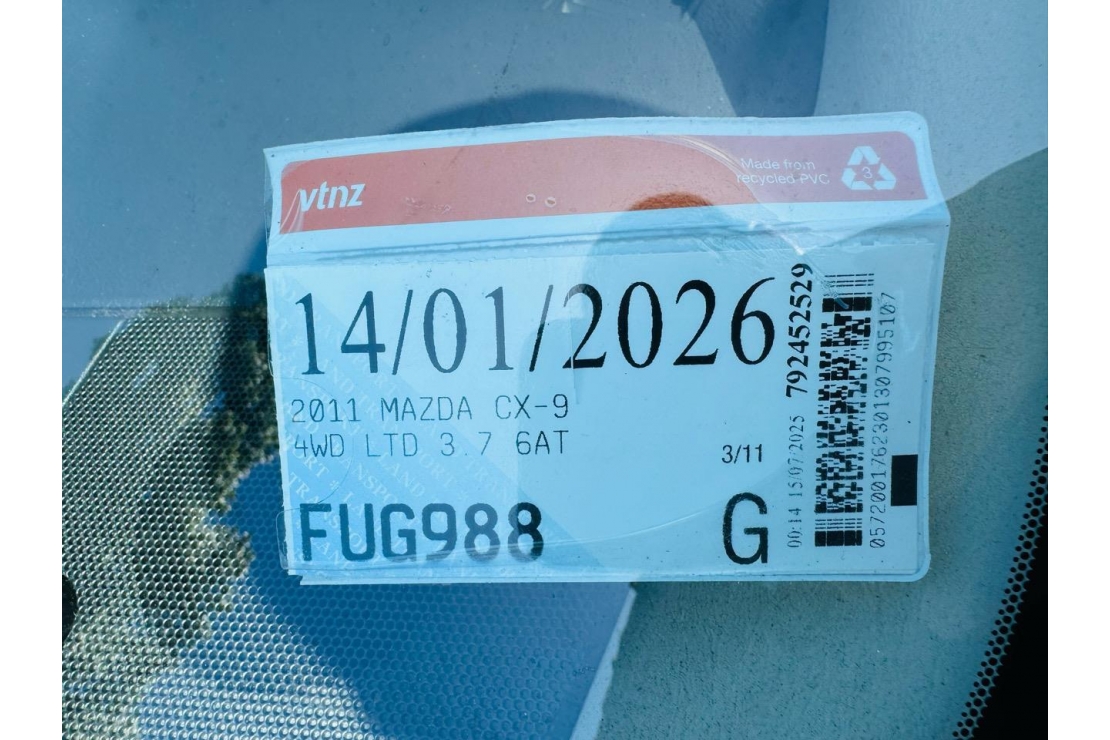 2011 Mazda CX-9 4WD a spacious and reliable SUV built for families and adventure. Comfortable cabin with plenty of room for passengers and gear, combined with capable 4WD performance for city streets or rougher roads. Well-maintained, tidy, and practical, making it a great-value option for anyone needing space, comfort, and versatility in one SUV.Mazda-Cx-9-NZ-NEW-4WD-LTD-7-SEATE...-2011/5283/5283