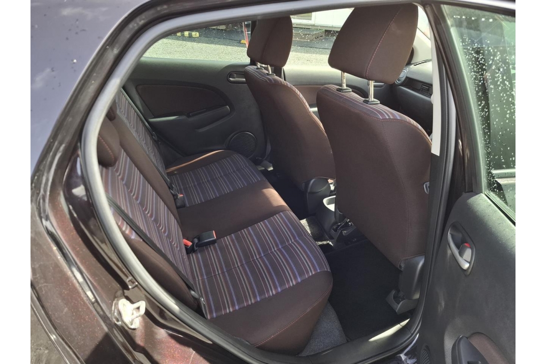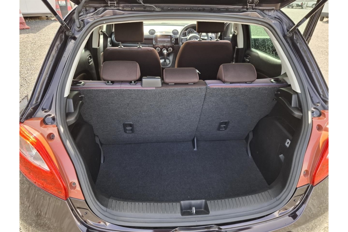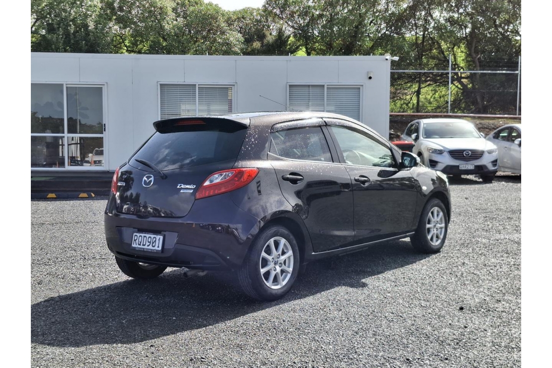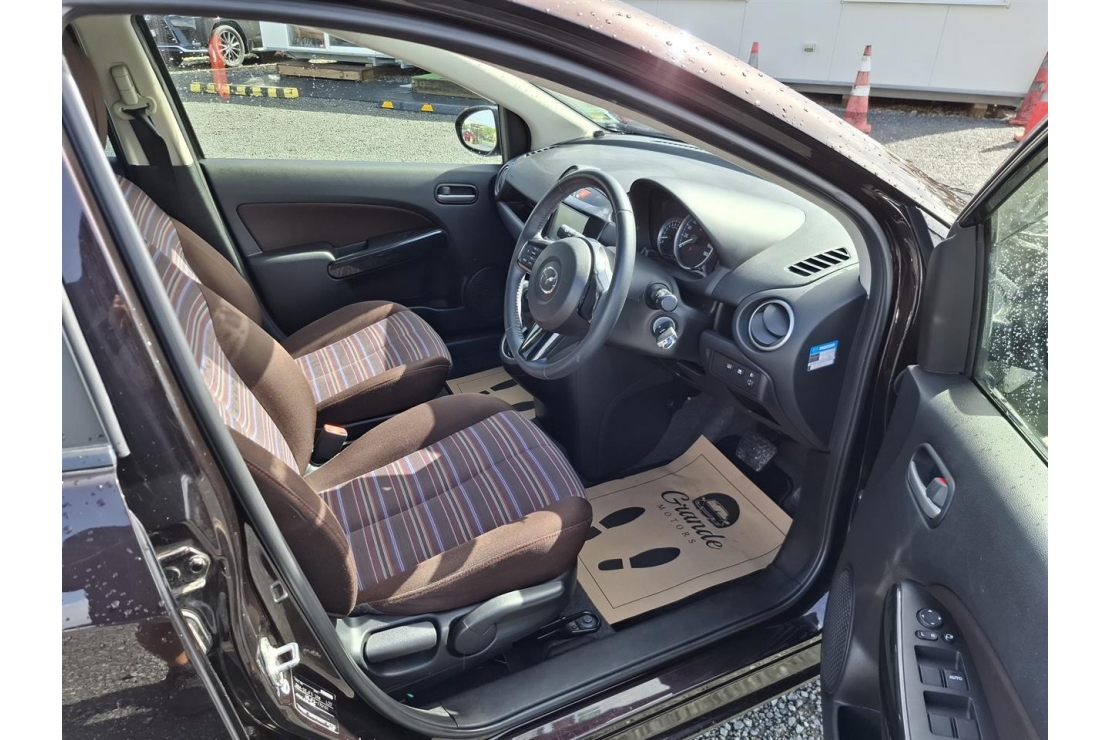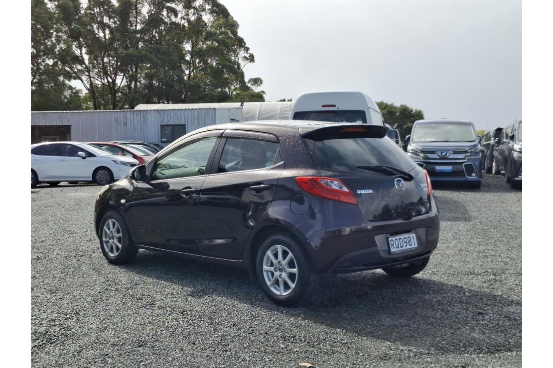 2014 Mazda Demio hatchback in red wine colour with dark interior.