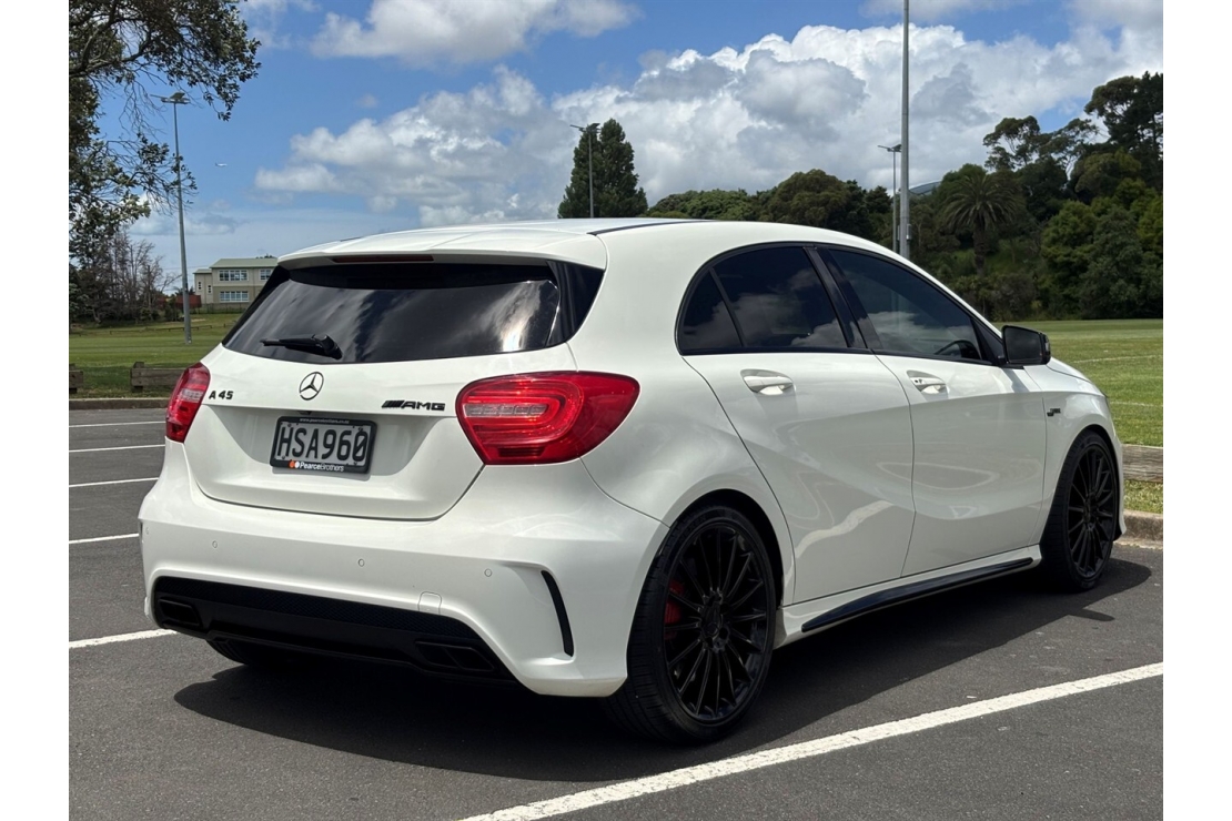 Serious performance meets premium AMG styling with this 2014 Mercedes Benz A45 AMG, finished in stunning Calcite White with a custom blackout and sitting on bold 19 inch alloys. NZ New and extremely well appointed, this is a true hot hatch with everyday usability and genuine AMG pedigree.