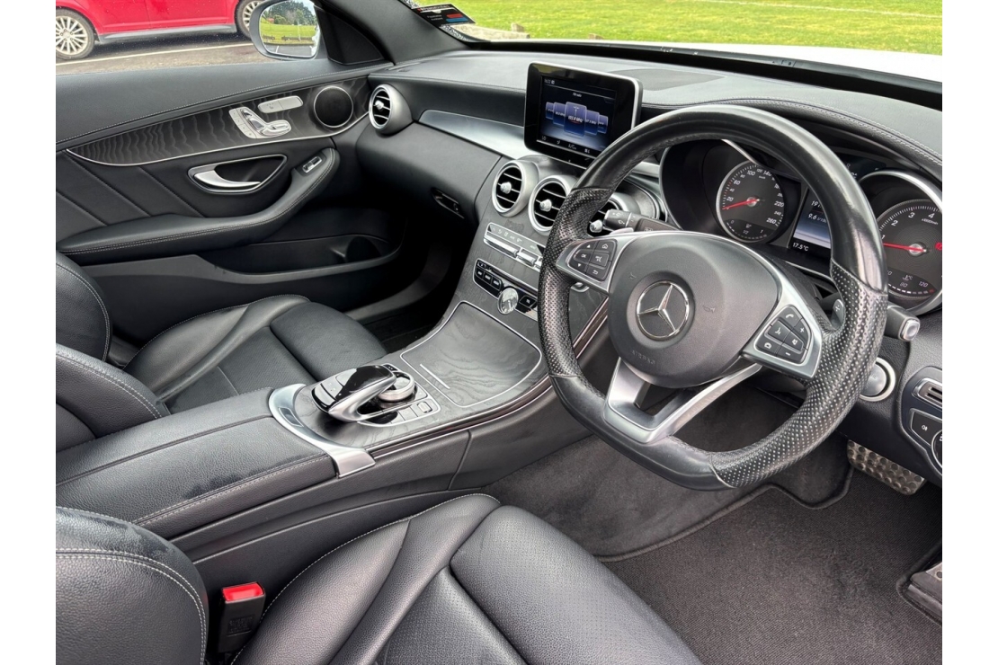 Powered by a responsive turbo petrol engine paired with a smooth 7 speed automatic transmission, the C200 offers confident performance complemented by sports suspension for a sharper driving feel. Inside, you are welcomed by a full black leather interior with electric heated front seats, ambient illumination, and AMG sports detailing throughout.