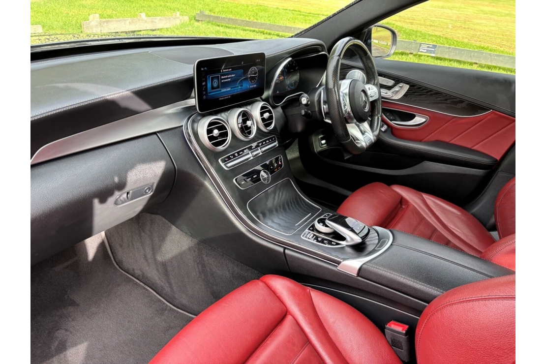 Premium full leather interior with heated seats, ambient lighting and an AMG steering wheel with gear shift buttons and paddles. A heads up display, full digital dash and large infotainment screen with navigation and smartphone integration package including Apple CarPlay and Android Auto keep you connected. Enjoy crystal clear sound through the premium Burmeister sound system.