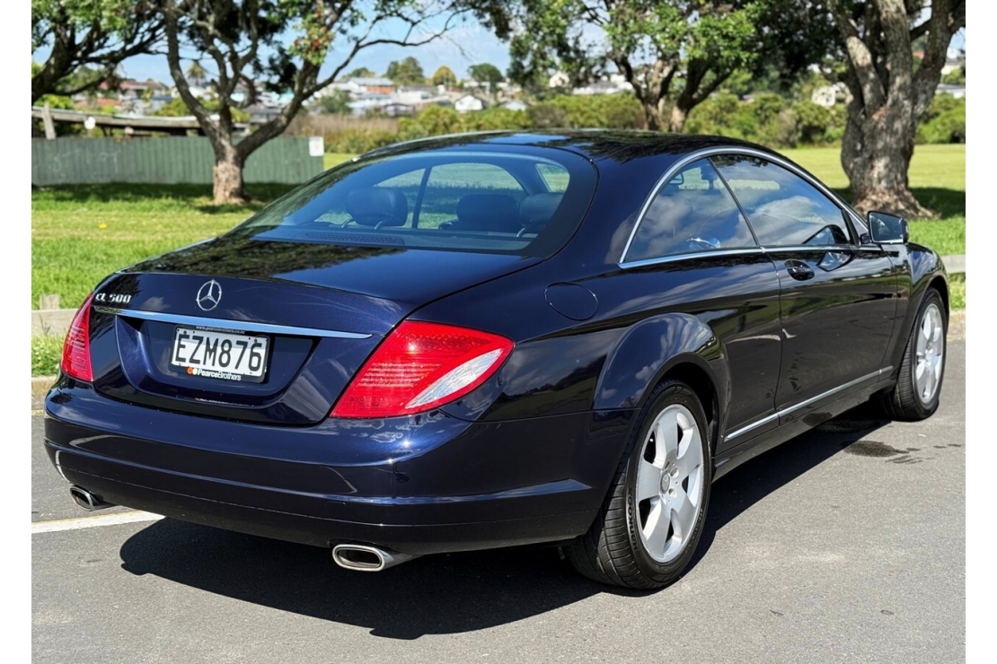 Experience timeless Mercedes-Benz luxury and performance with this elegant 2009 CL500 Coupe, NZ New and beautifully finished in metallic Tanzanite Blue. Under the bonnet lies the iconic 5.5-litre V8 petrol engine producing 285kW and 530Nm of torque, paired with a refined 7-speed automatic transmission
