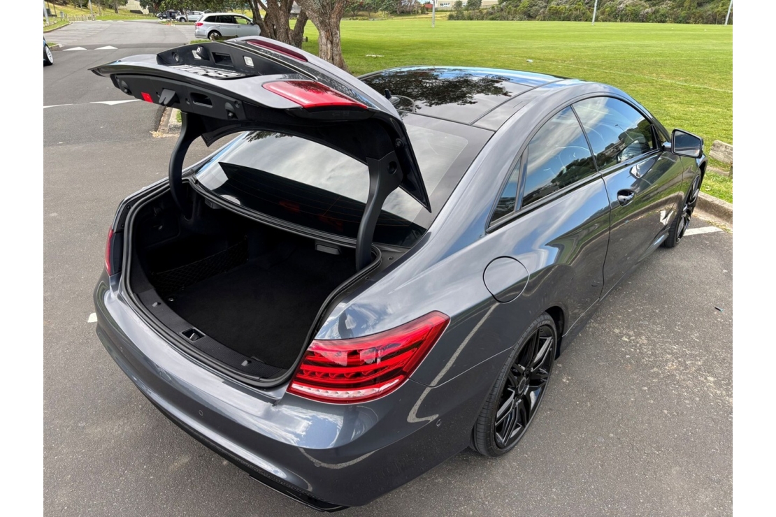 This 2016 Mercedes Benz E400 Coupe is a high spec New Zealand New example finished in Metallic Tenorite Grey with a custom blackout and sitting on AMG 19 inch spoked alloy wheels. Powered by a refined 3.0 litre V6 petrol engine paired with the smooth 7 speed automatic transmission with paddle shifters