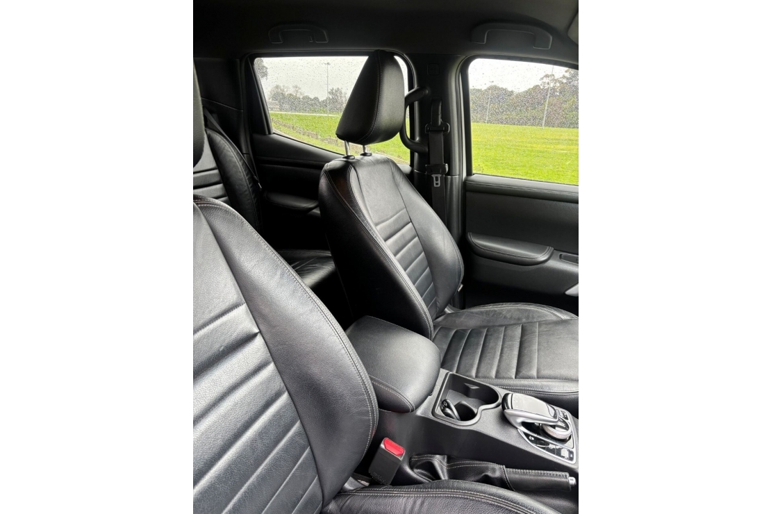 This X-Class features a colour-matched locking alloy hardlid and electric rear sliding window, plus practical extras like a tow bar and the Style Package. The cabin is loaded with full black leather interior with heated seats, stitched dash, leather steering wheel with shift paddles, and premium trim accents.