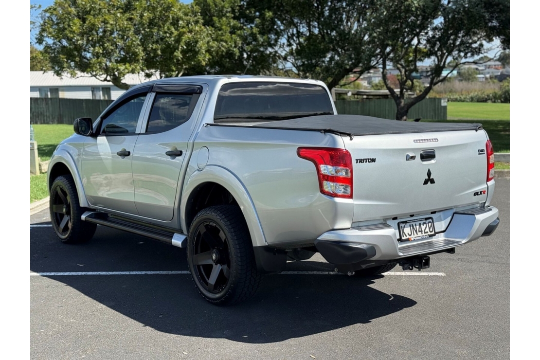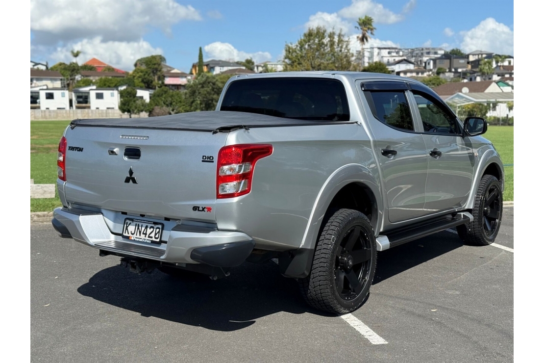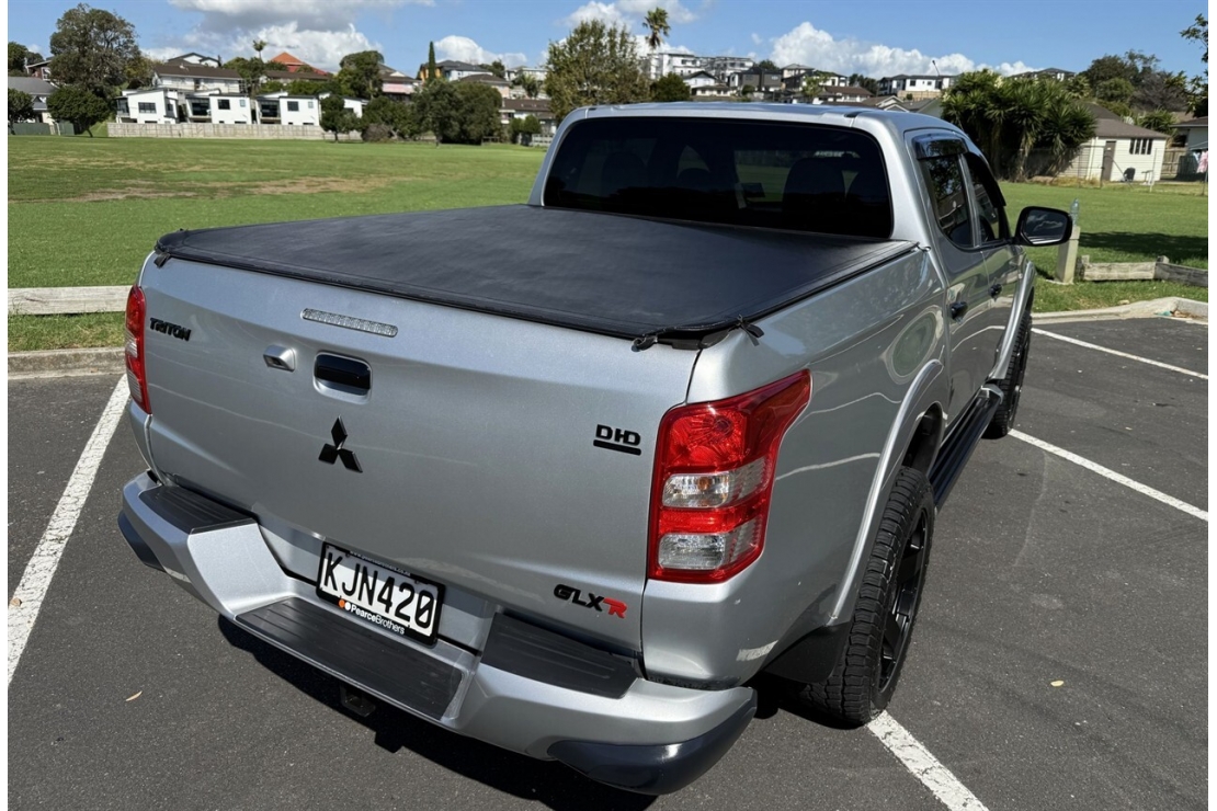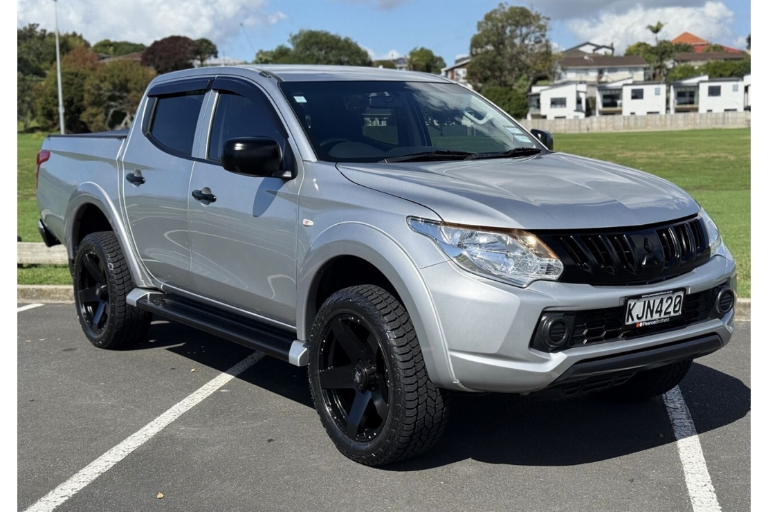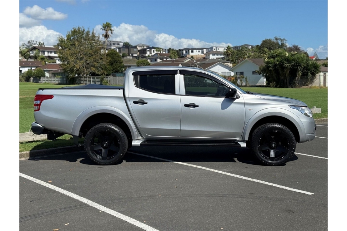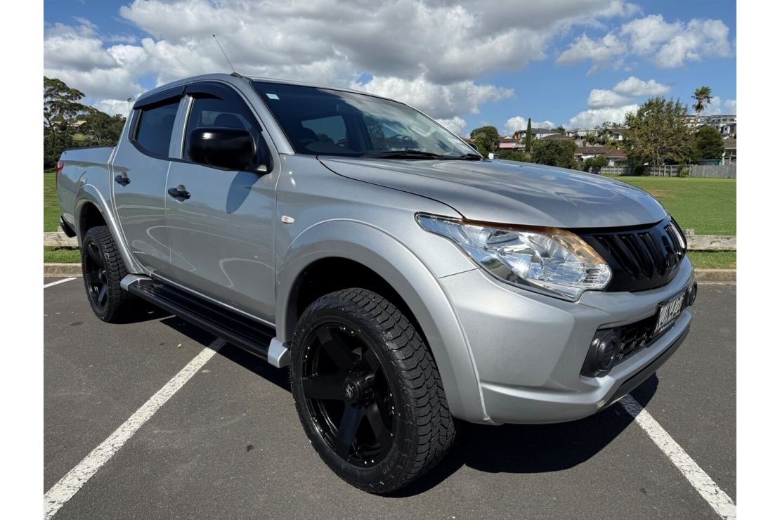 This New Zealand new 2017 Mitsubishi Triton GLXR double cab in metallic silver with custom blackout styling is a tough and practical ute ready for work or lifestyle use. Sitting on brand new 20 inch alloy wheels and tyres with monsoon shields, tinted windows, and running boards, this Triton has a strong road presence. A tonneau cover and deck liner