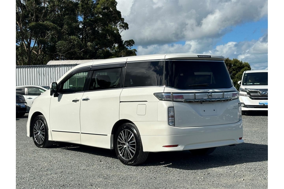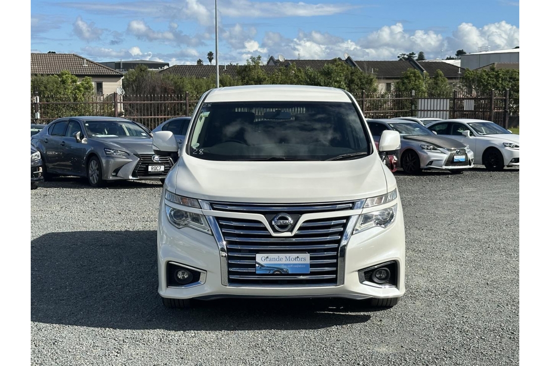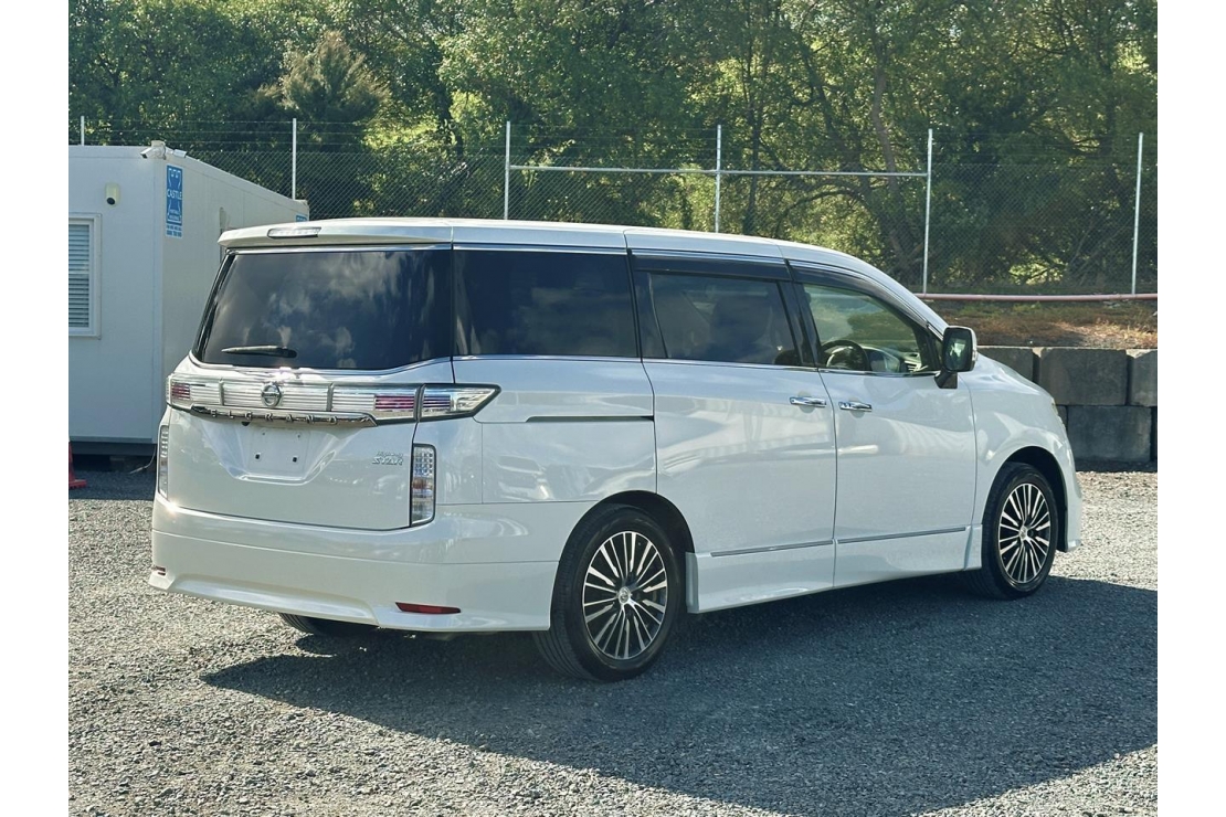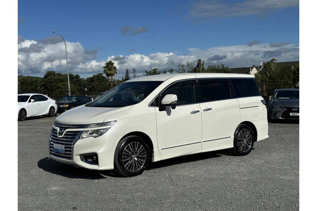 2015 Nissan Elgrand Highway Star 7 seater in White colour with black interior.
