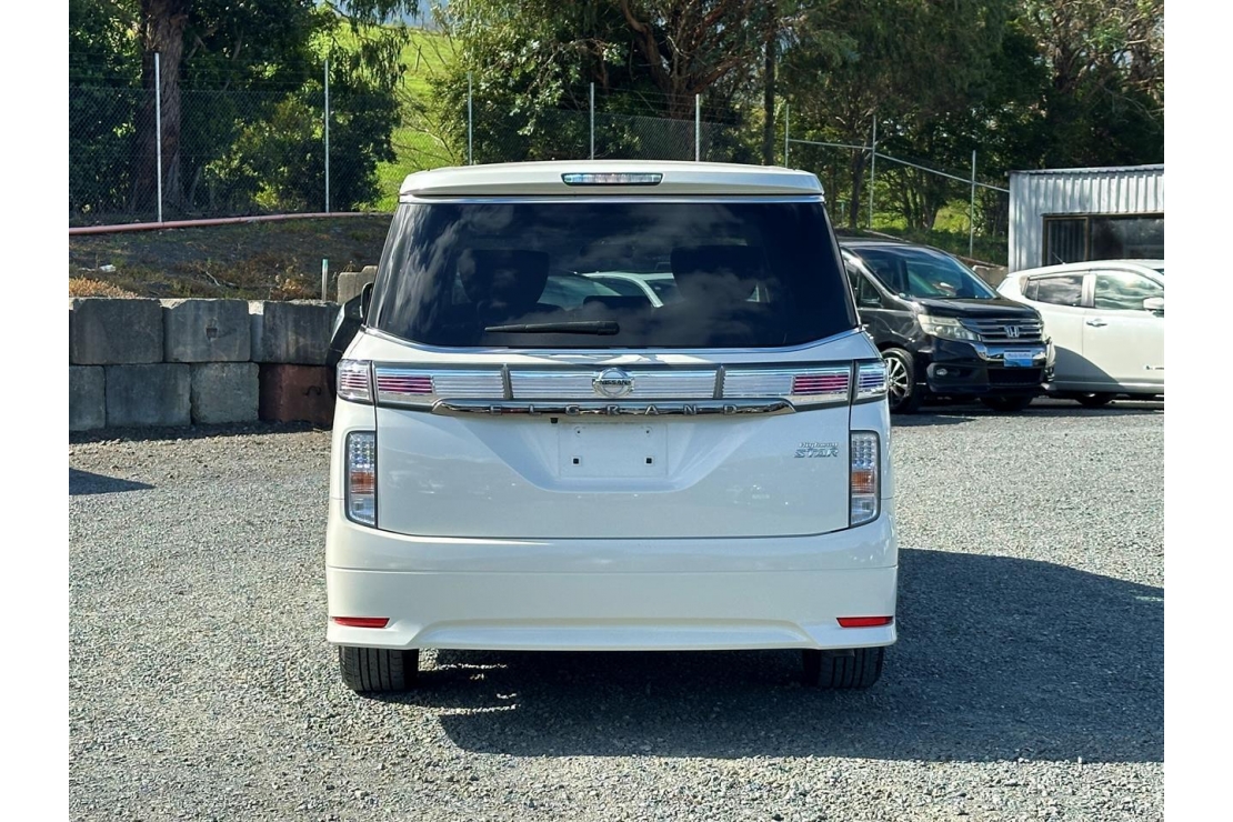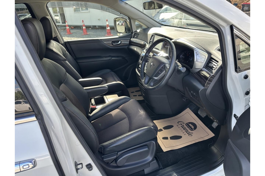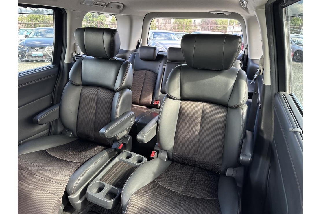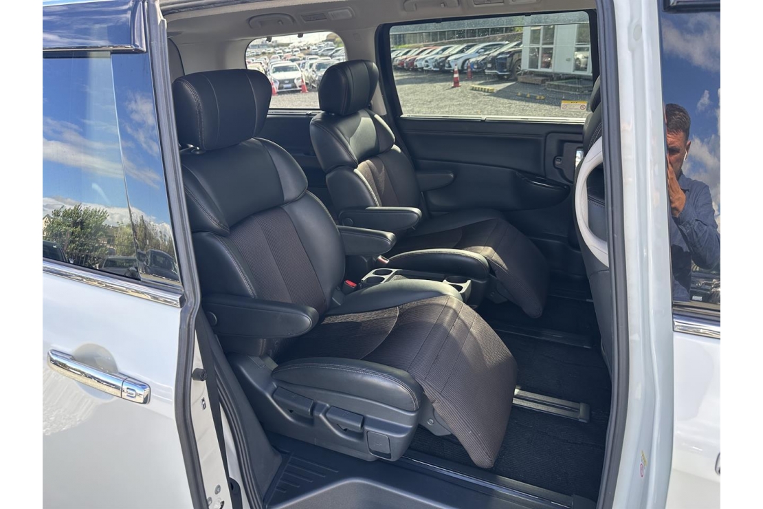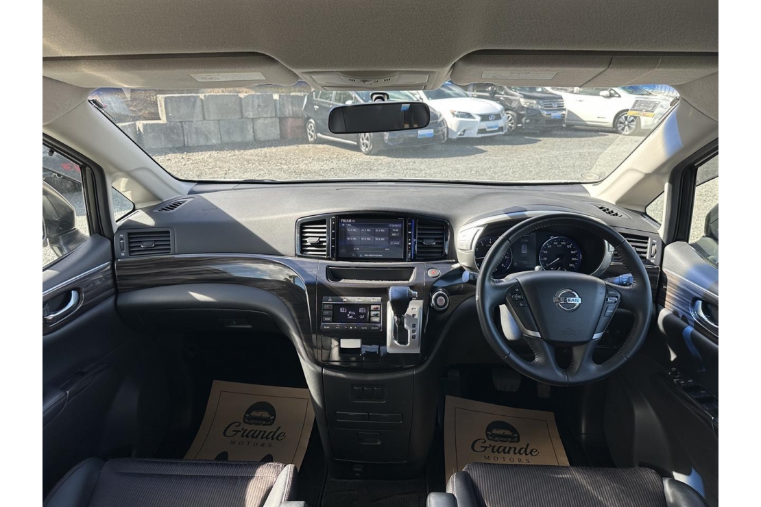 2015 Nissan Elgrand Highway Star 7 seater in White colour with black interior.