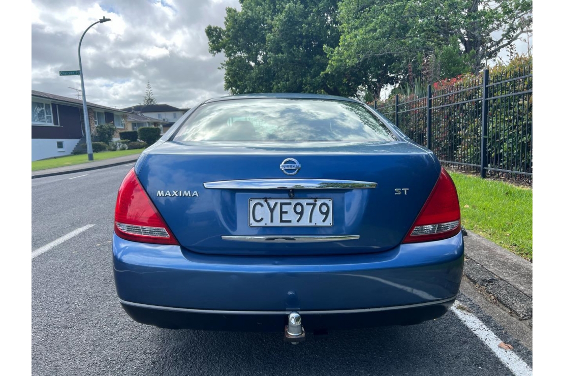 2005 Nissan Maxima in blue, 205,000km, used but in good condition. Smooth V6 comfort and great value for anyone wanting a cheap, tidy, and reliable sedan.Nissan-Maxima-ST-3.5P-NZ-NEW-REVERSE-...-2005/5418/5418
