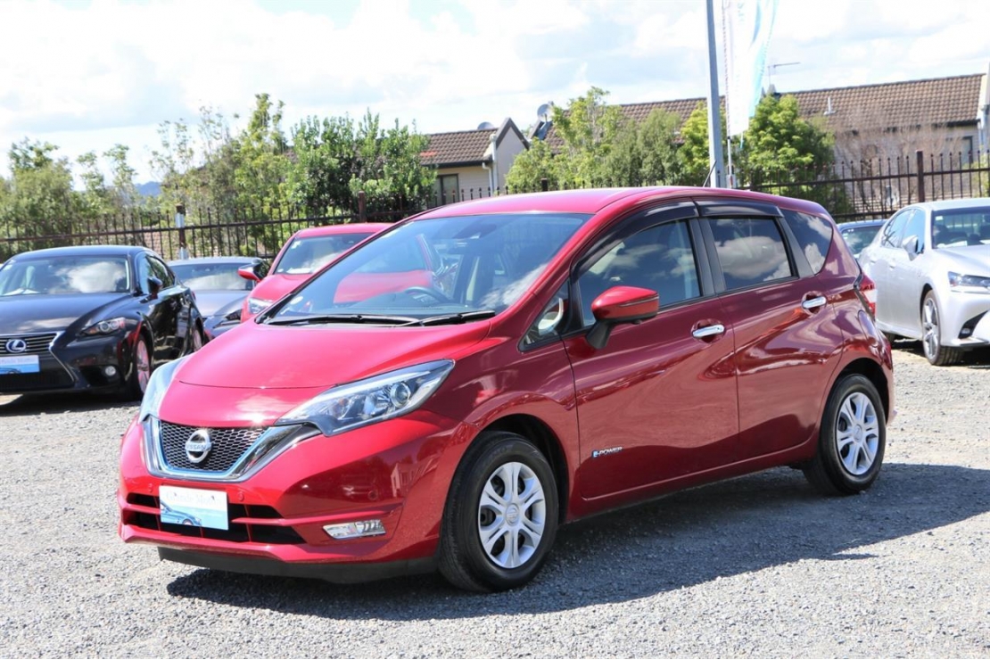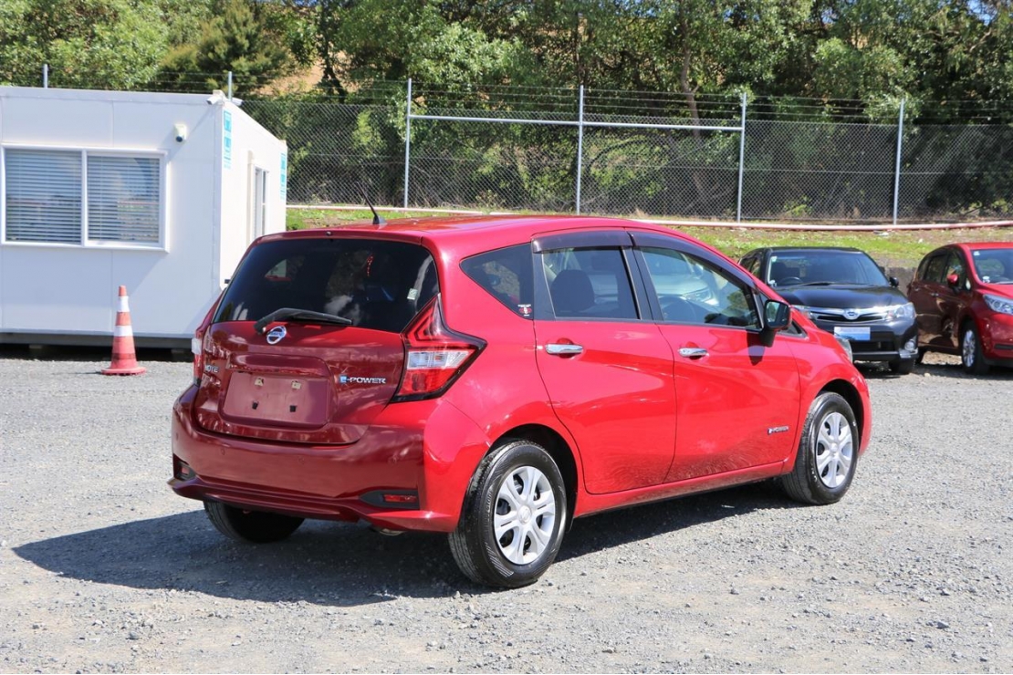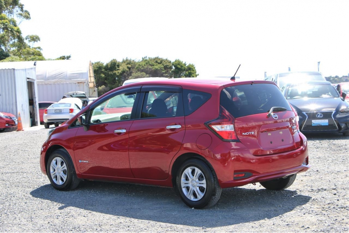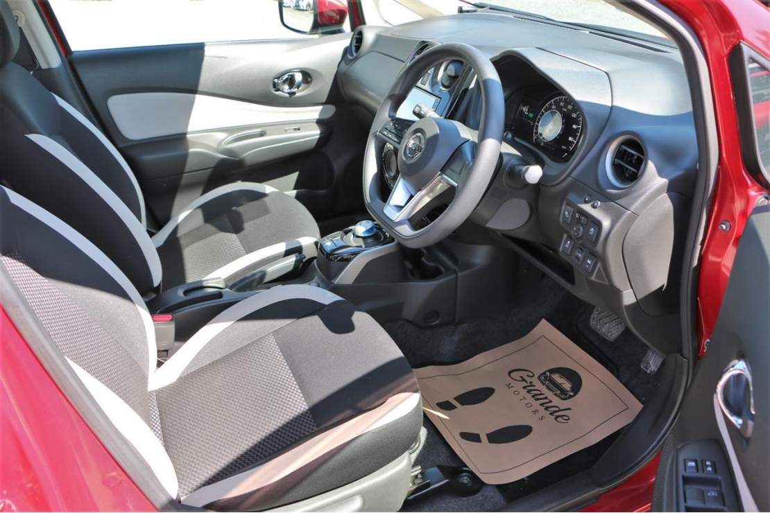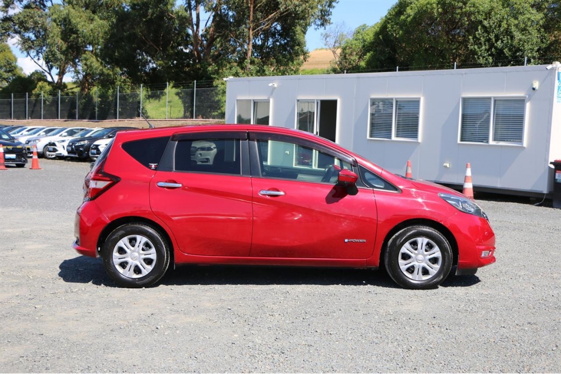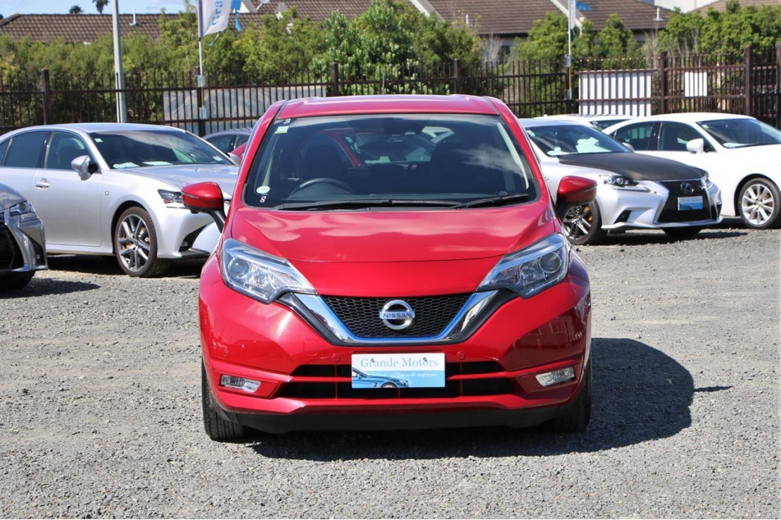 2017 Nissan Note E-Power Hybrid in red colour with dark interior.