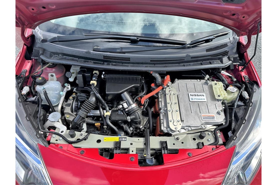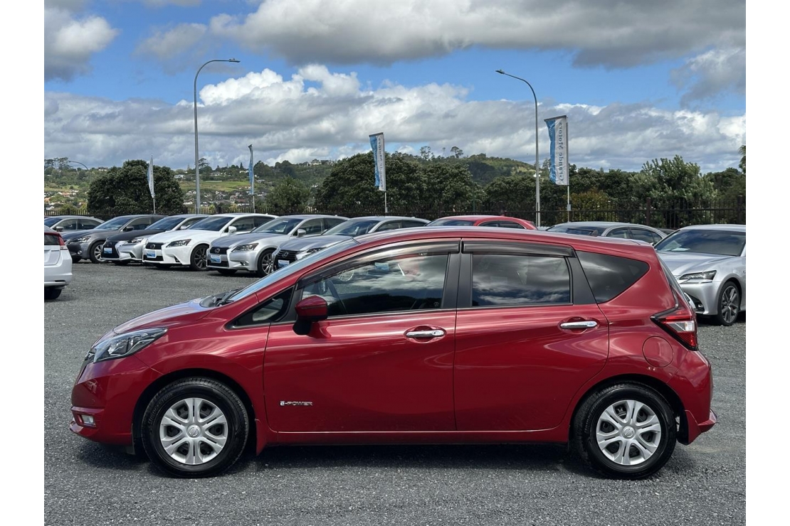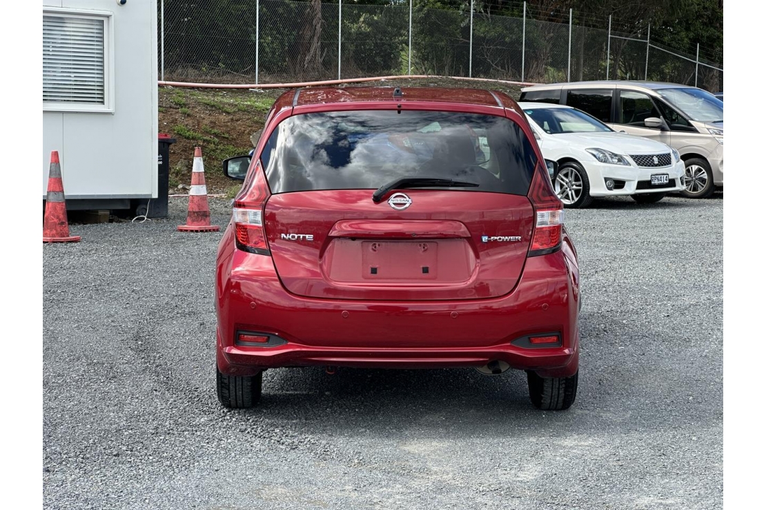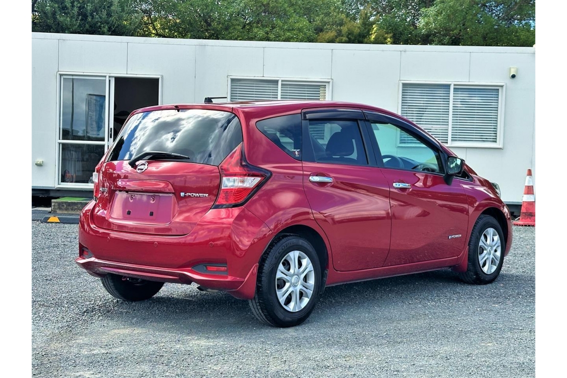 2018 Nissan Note E-Power Hybrid in Red colour with dark interior.
