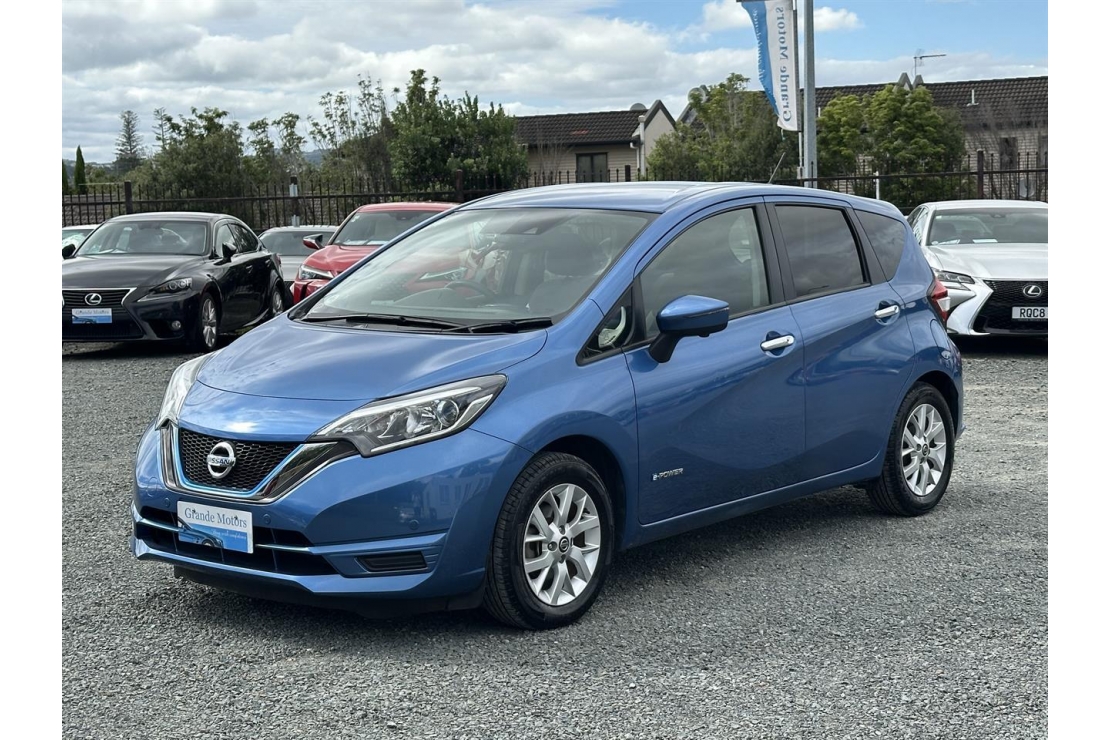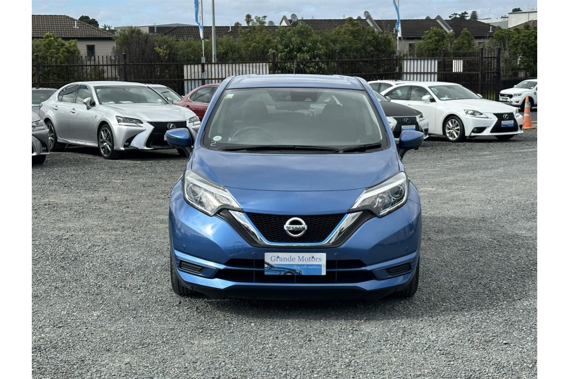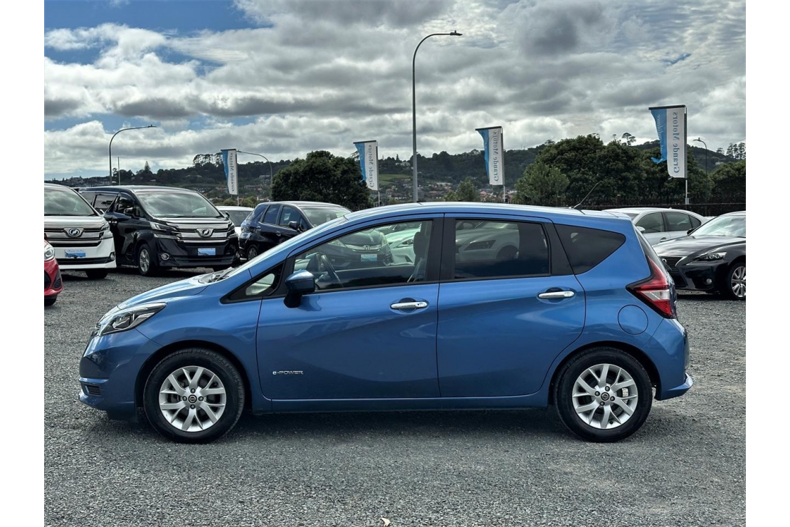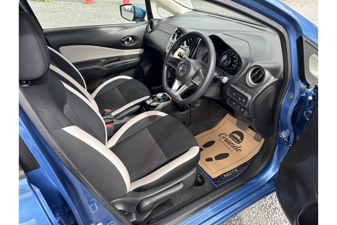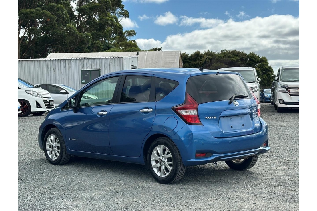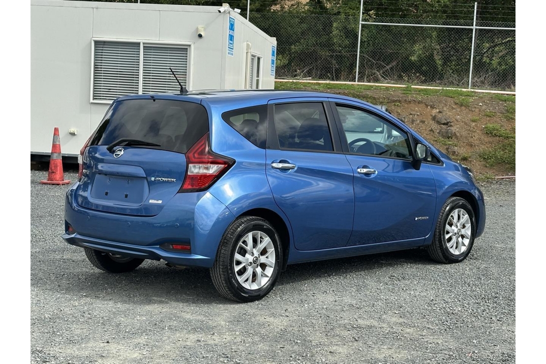 2019 Nissan Note E-Power Hybrid in blue colour with dark interior.