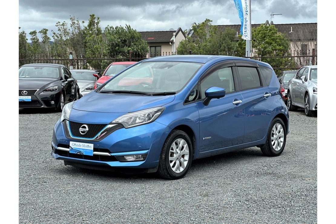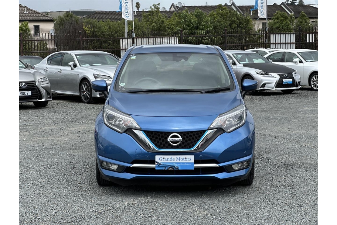 2017 Nissan Note E-Power Hybrid in blue colour with dark interior.