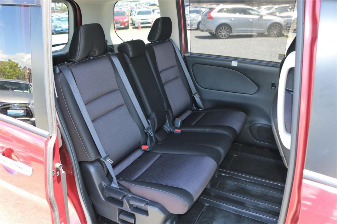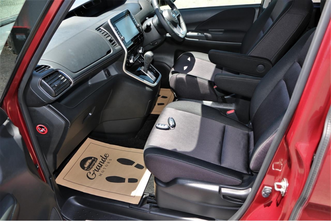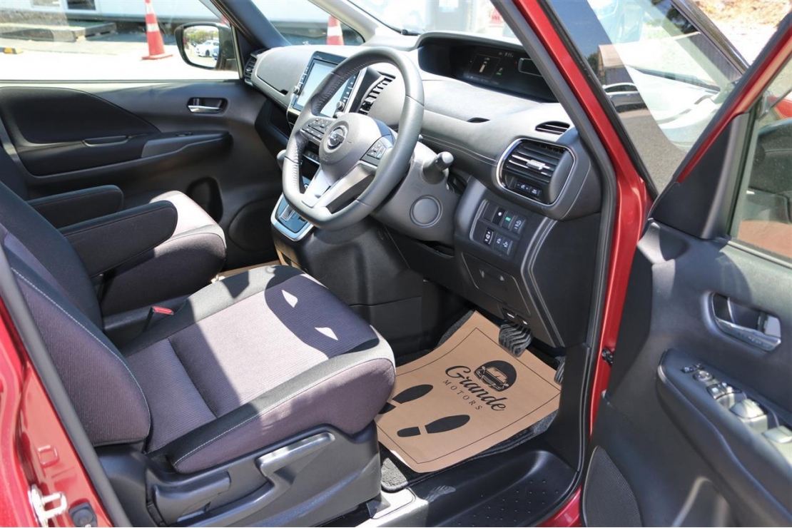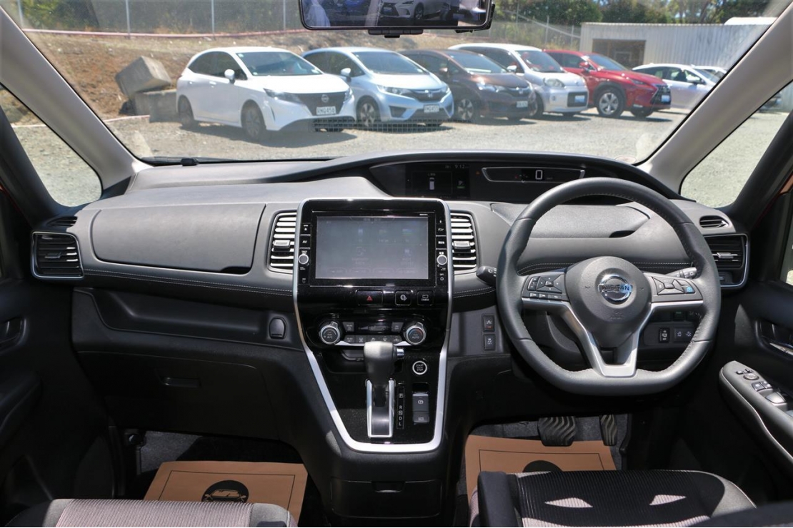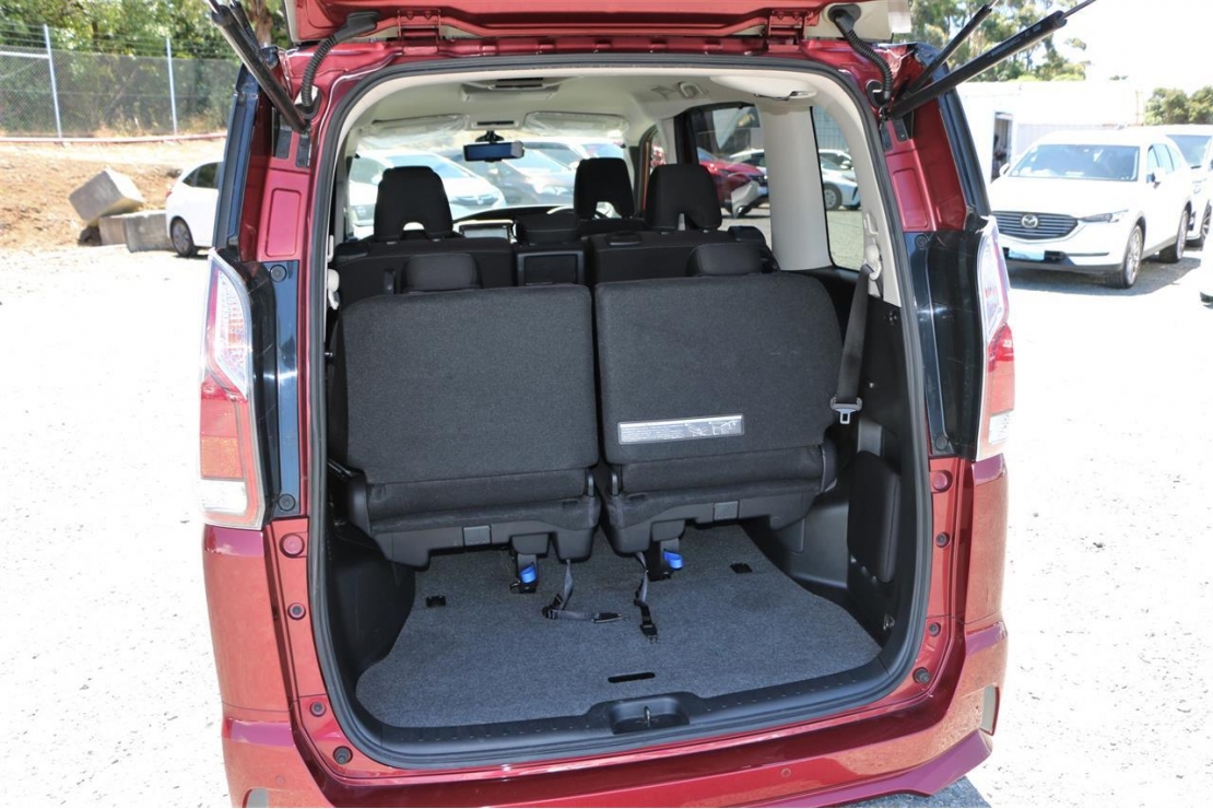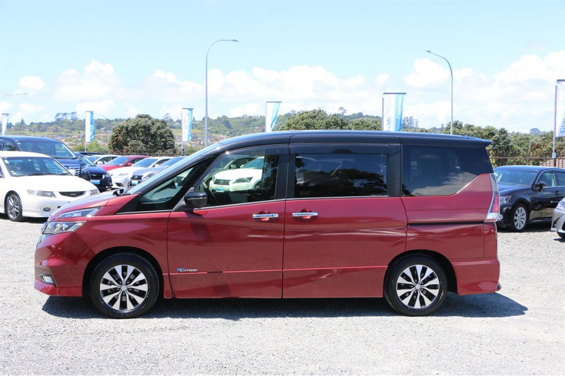 Top spec 2018 Nissan Serena G Hybrid Highway Star 8 seater in Red Wine colour with black seats.