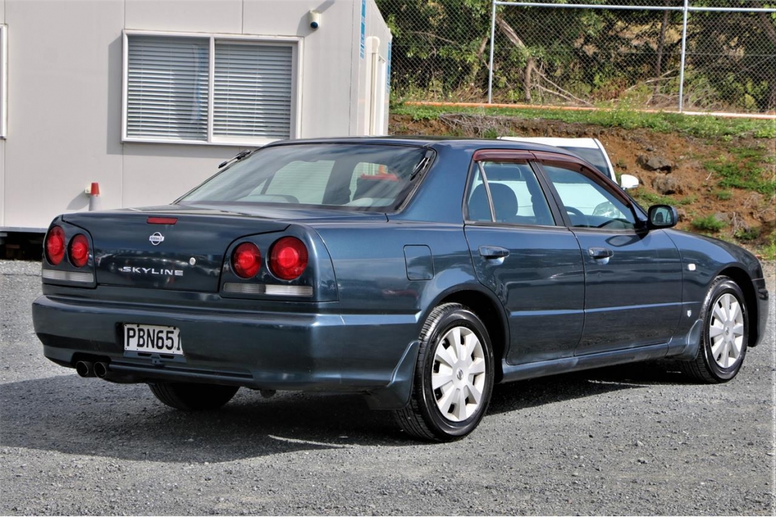 2001 Nissan Skyline GT in blue colour with grey seats.