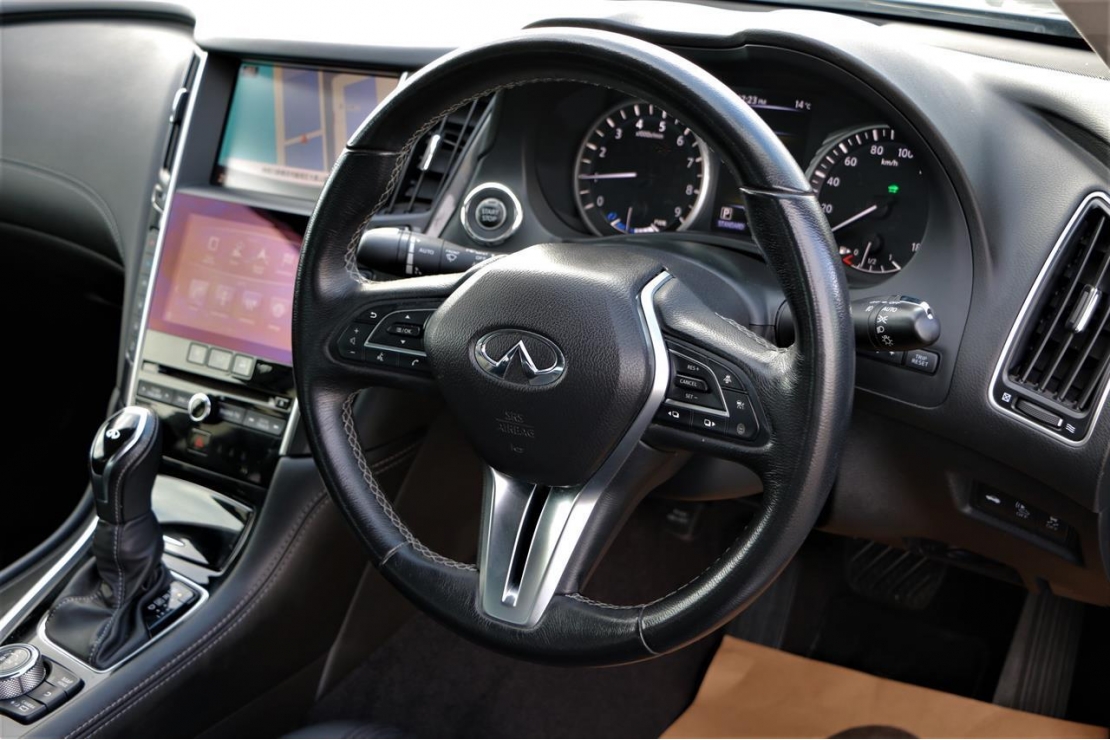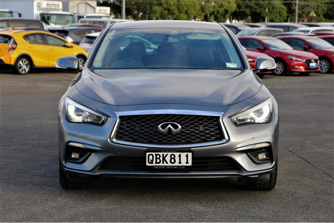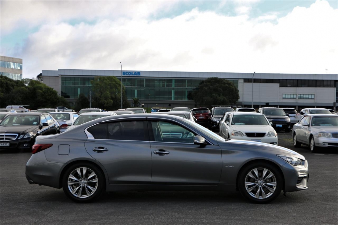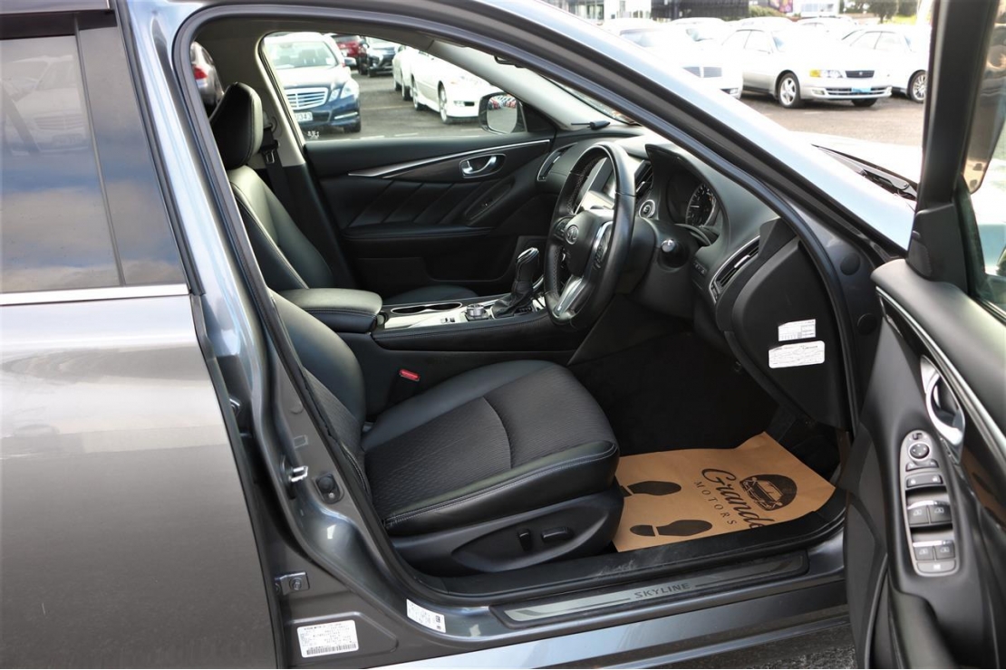 2017 Nissan Skyline 350GT hybrid in grey colour with black seats.
