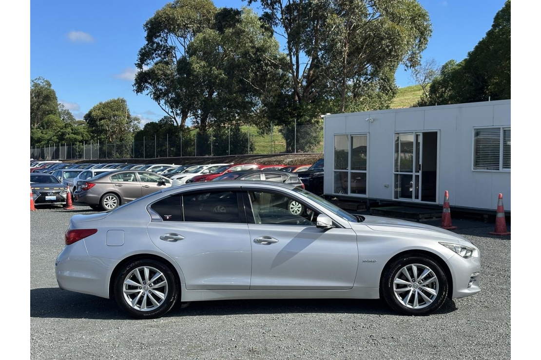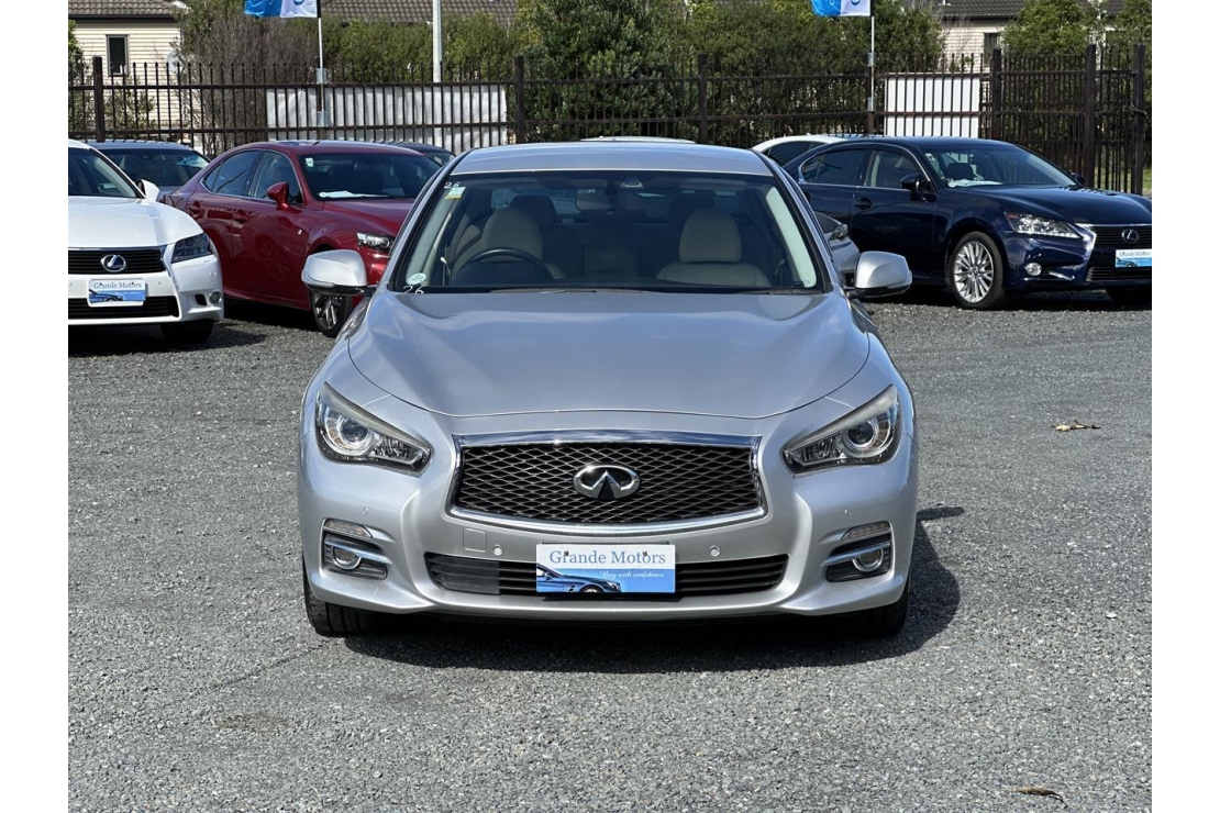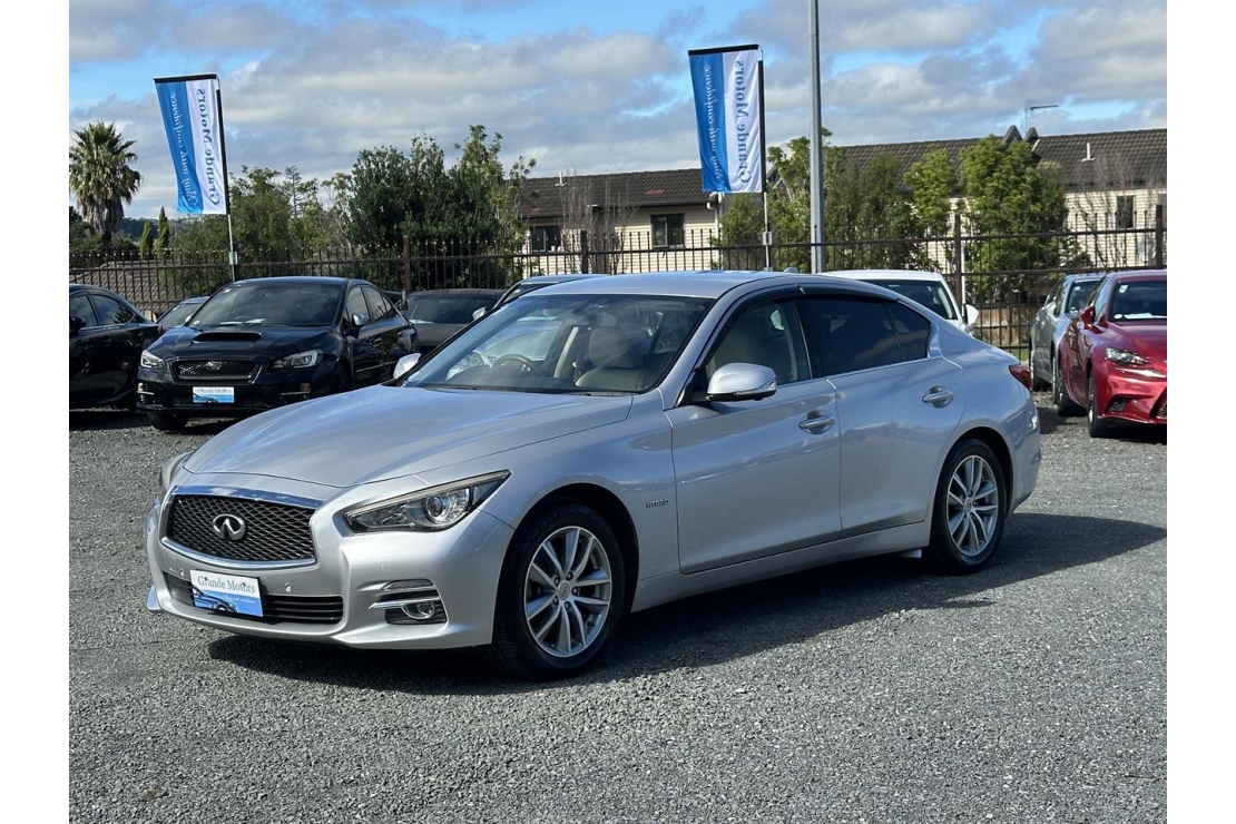 2015 Nissan Skyline 350GT hybrid in silver colour with leather seats.