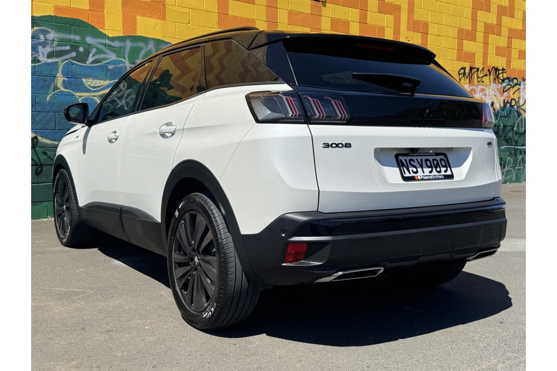 A striking 5-door crossover that combines French style, advanced technology, and effortless performance. Finished in elegant pearlescent white with a black pearl roof and custom blackout detailing, this NZ New Peugeot 3008 GT sits on bold 19" alloys and delivers both sophistication and practicality.