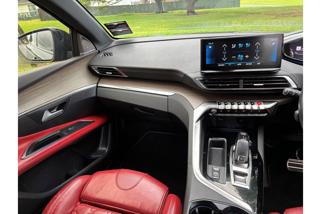 This New Zealand new 2022 Peugeot 3008 GT in metallic platinum grey is a premium five door crossover SUV that blends European styling with advanced tech and comfort. Sitting on 19 inch alloys with tinted windows, this GT model offers a sharp modern look and high spec finish.