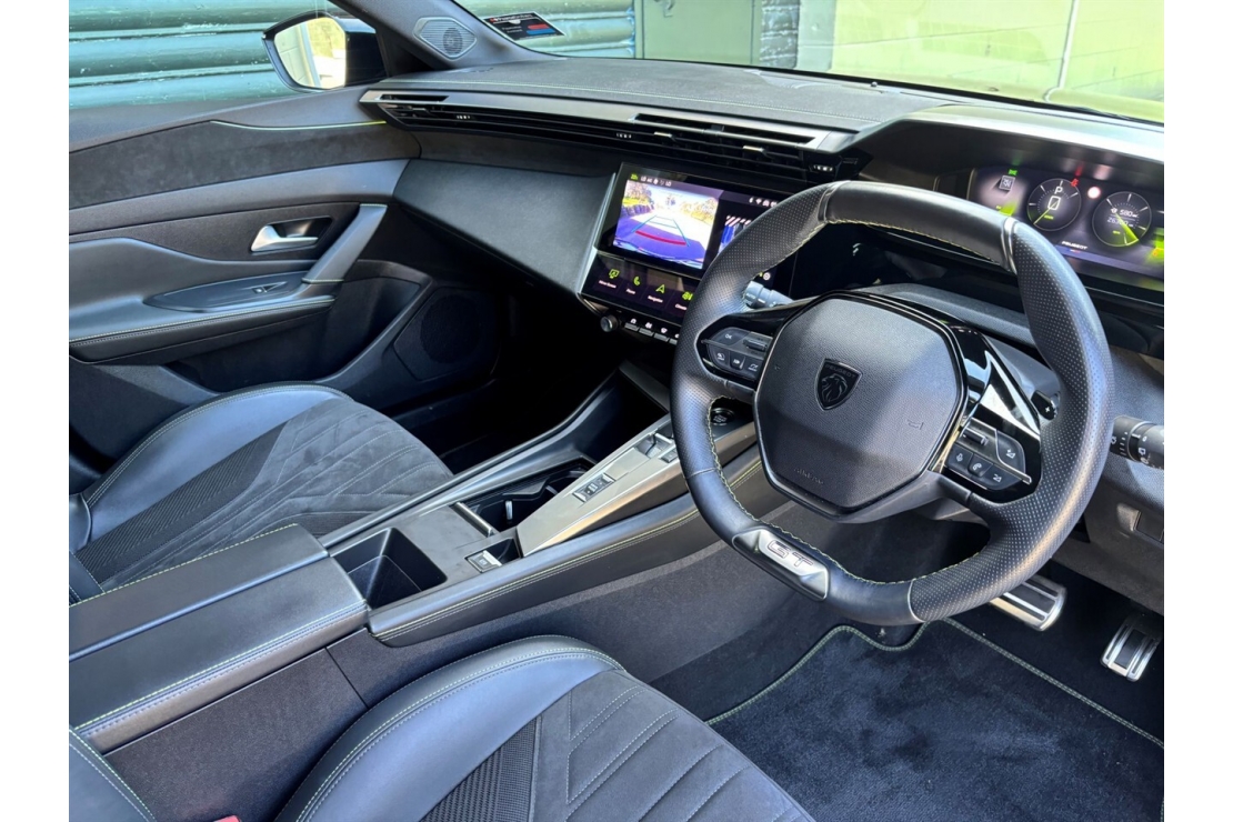 Inside, youre greeted with a premium black half leather and Alcantara interior, a 10-inch edge colour HD touchscreen with navigation, and the Perforated full grain leather GT steering wheel for a refined driving feel. Peugeots advanced safety suite includes blind spot monitoring with lane change assist, radar obstacle detection with trajectory, electronic stability program, and Bosch 9.3 ESP.