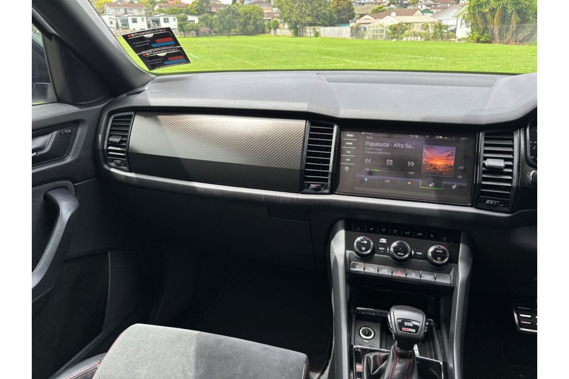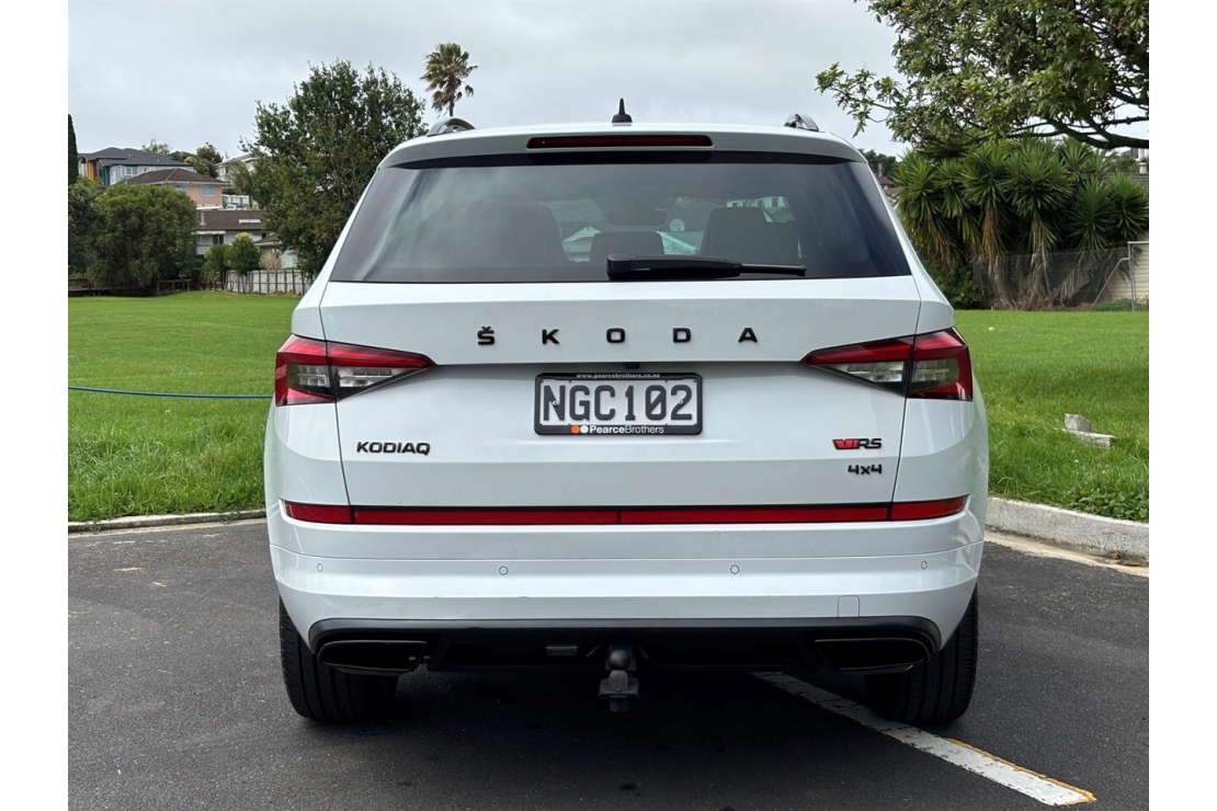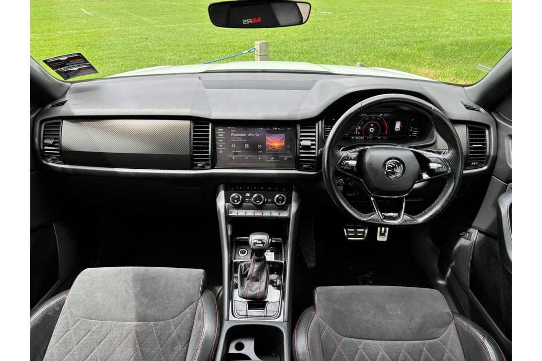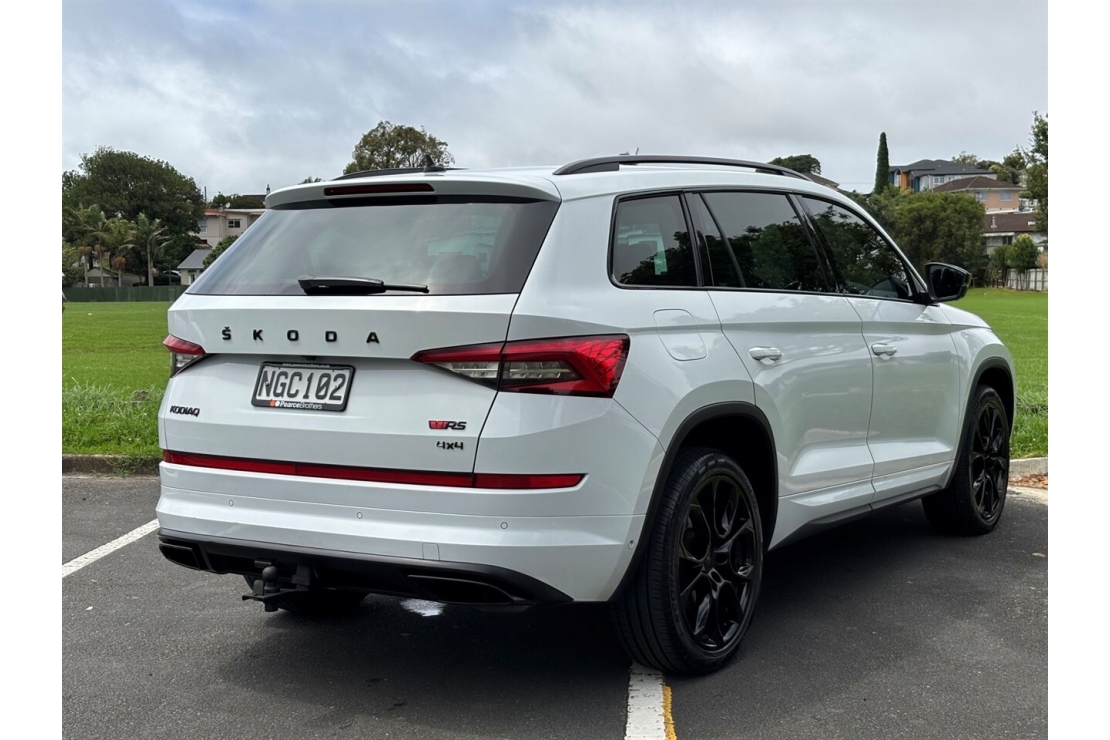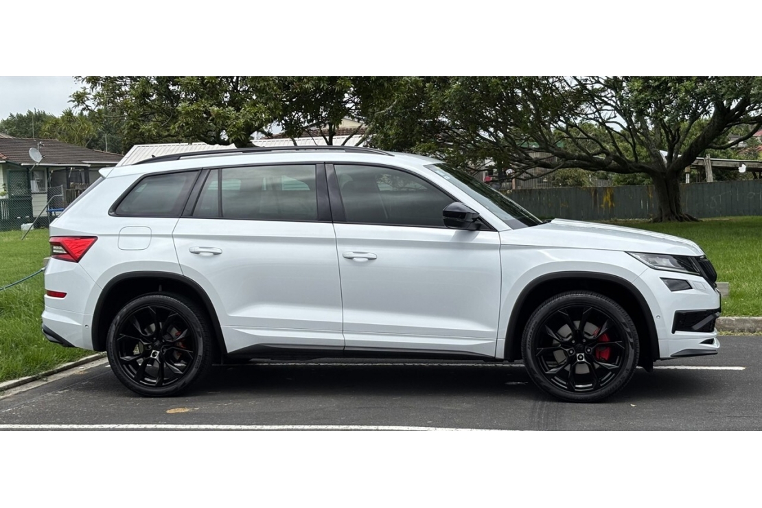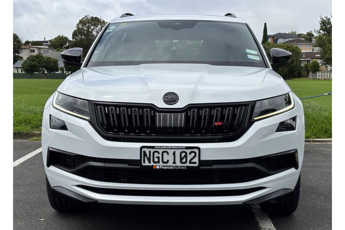 Sporty performance meets seven seat practicality in this New Zealand new 2021 Skoda Kodiaq RS TDI. Finished in White with a sharp custom blackout and sitting on striking 20 inch alloy wheels, this RS model delivers serious presence along with outstanding diesel performance.