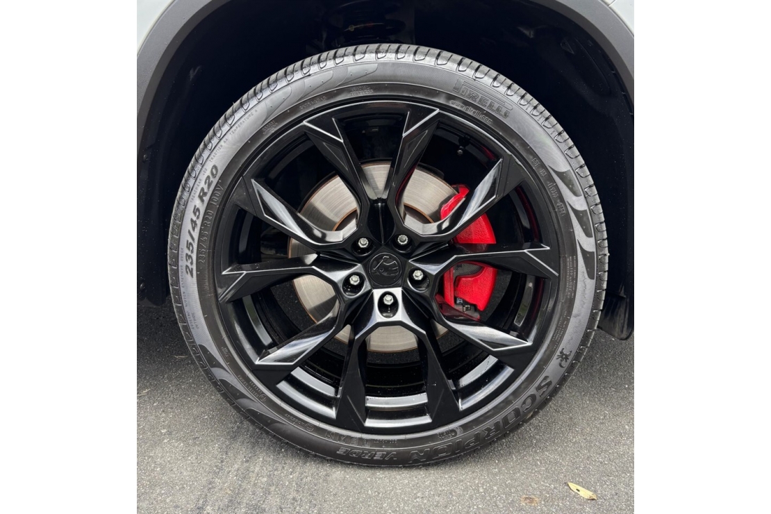 Inside, the full black leather interior feels premium and sporty, complemented by heated seats, a digital dash, and a large touchscreen infotainment system with Apple CarPlay, Android Auto, and Bluetooth connectivity. Safety and convenience are well covered with ISOFIX, reversing camera, and parking sensors.