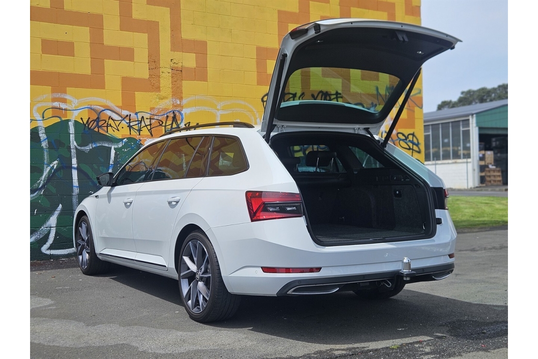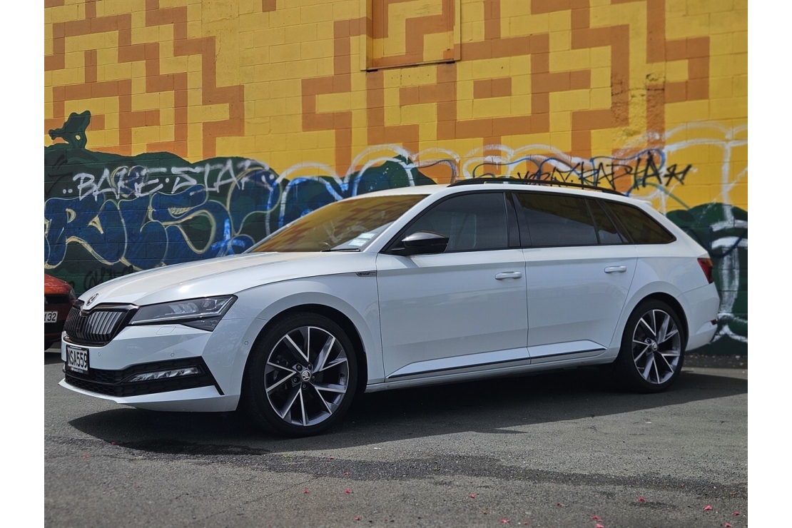 CHECK THIS OUT 2021 Skoda Superb Sportline IV Wagon Plug-In Hybrid 1.4 Turbo Petrol in Metallic Moon White with 19" Alloys and Sportline Interior