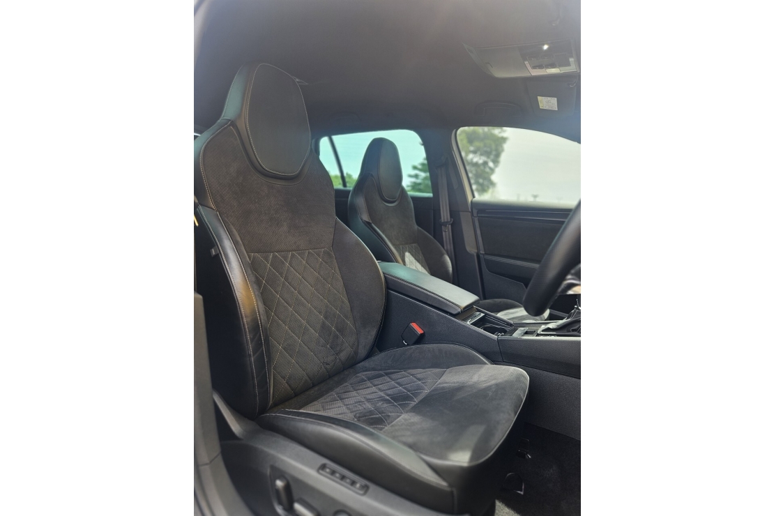 Step inside the premium Sportline interior featuring heated front and rear leather sport seats, ambient lighting, and a heated perforated multifunction steering wheel with DSG paddle shift. Enjoy effortless control through the Virtual Cockpit digital display, navigation system with Smart Link wireless Apple CarPlay, Bluetooth connectivity, and premium audio system.