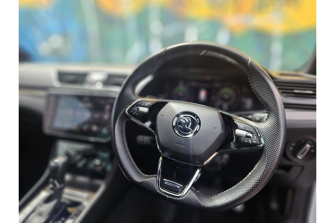 Experience the perfect balance of power, technology, and European luxury with this stunning NZ New 2021 Skoda Superb Sportline IV Plug-In Hybrid. Finished in sleek Metallic Moon White and sitting on 19 inch VEGA Anthracite polished alloys.