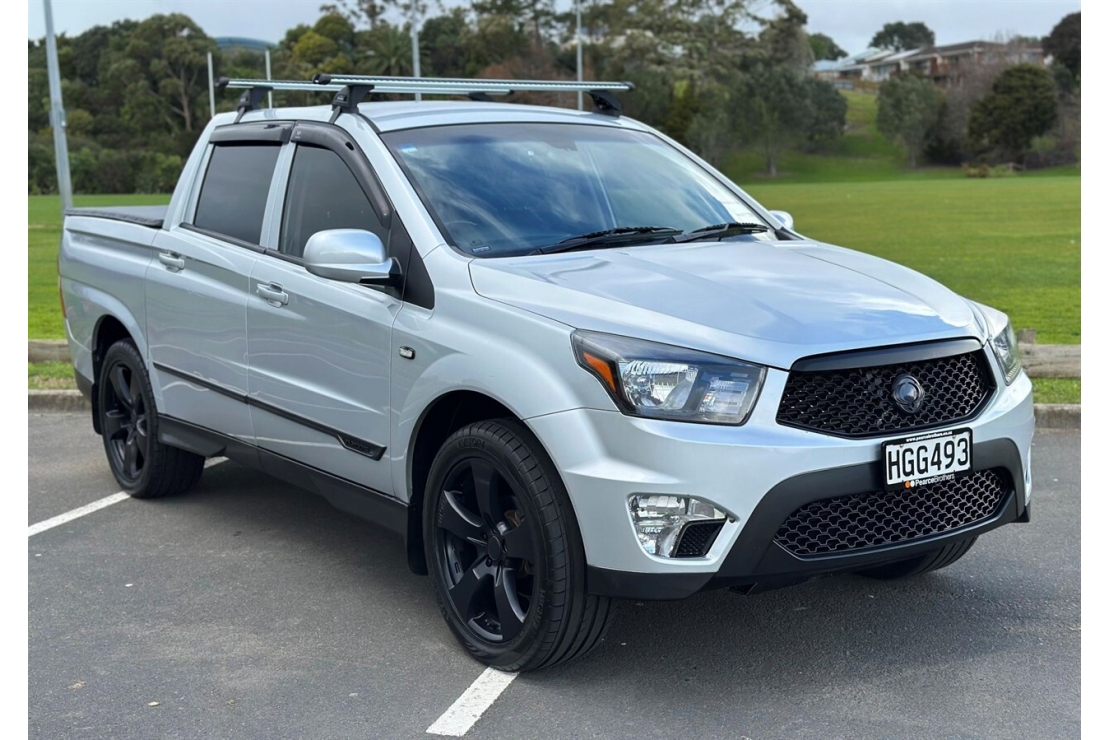 A versatile and rugged ute, this NZ New 2014 SsangYong Actyon Sport is finished in Metallic Silver with a full custom blackout and sits on brand new 20" alloys and tyres for a tough look. Powered by the reliable 2.0L turbo diesel engine with a rare manual 4X4 transmission, it delivers solid pulling power and genuine off-road ability.