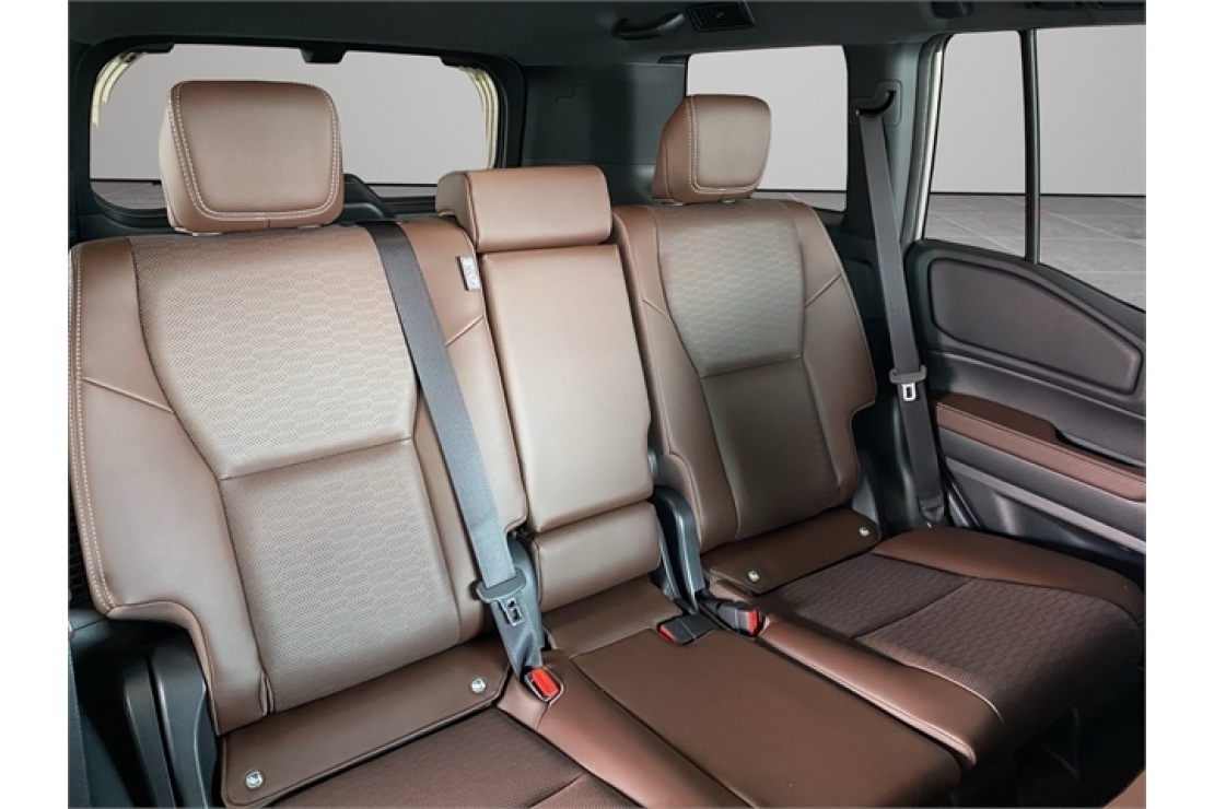**Interior**: Premium leather-accented upholstery with heated and ventilated front seats, a digital rearview mirror, and a titanium interior ornamentation package.