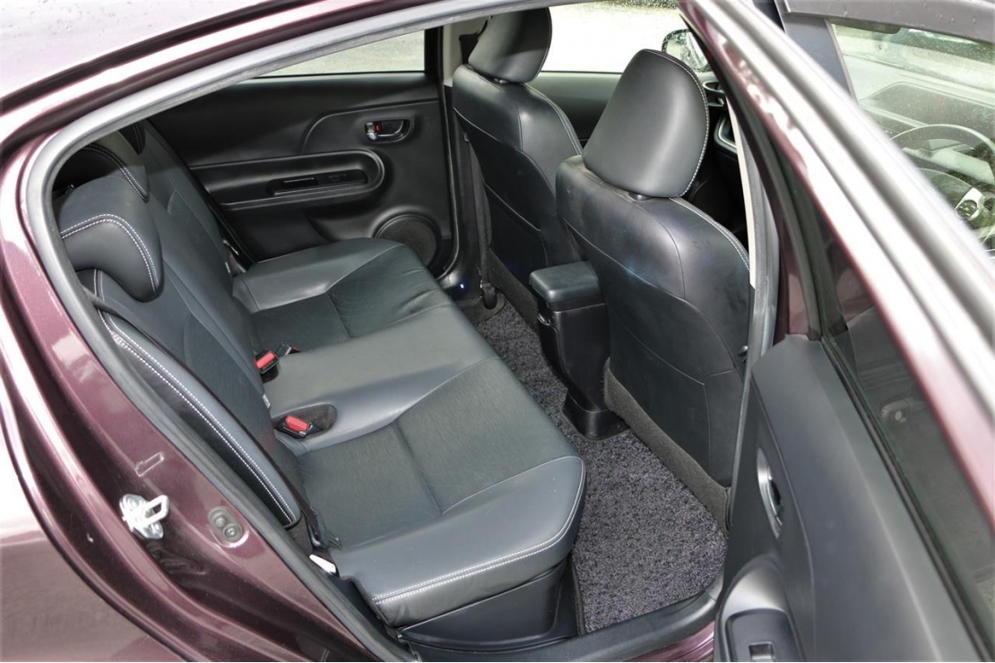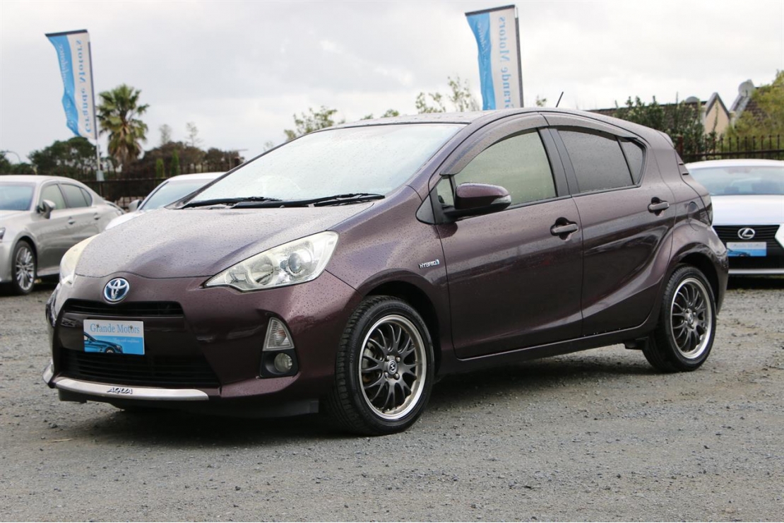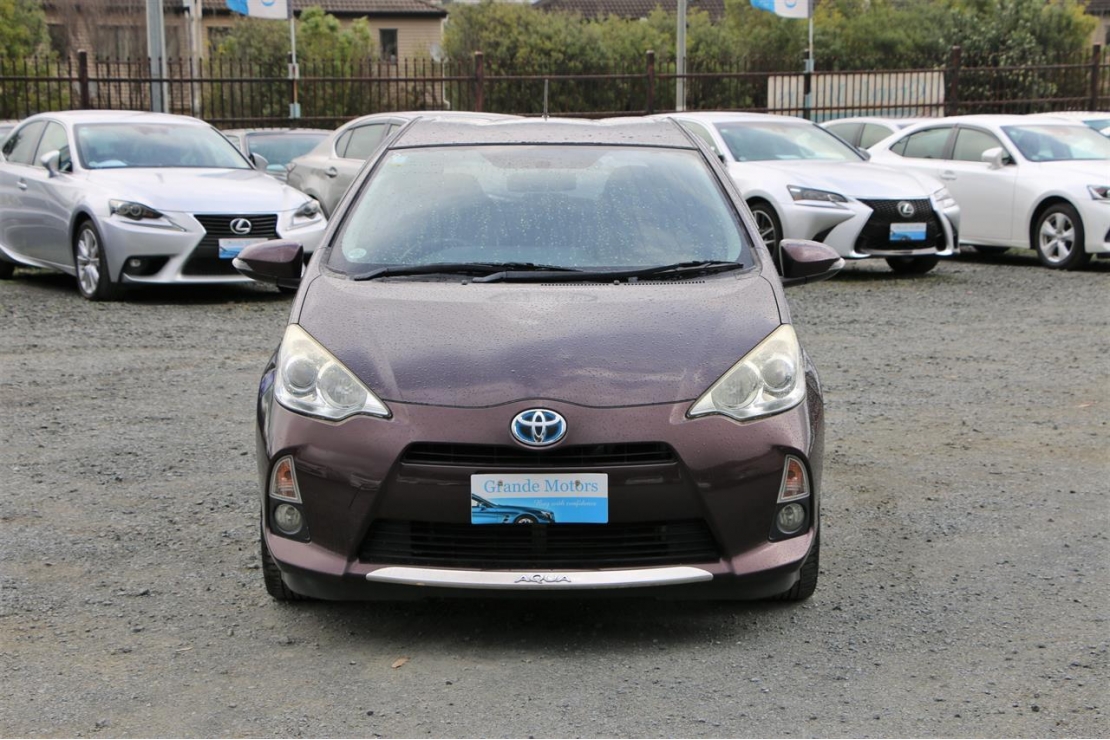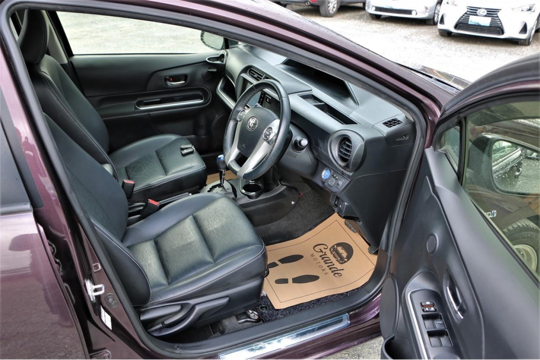2014 Toyota Aqua G model in purple colour with black leather interior.
