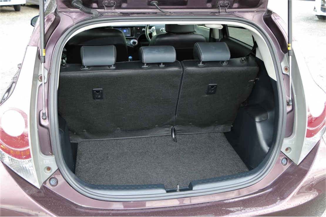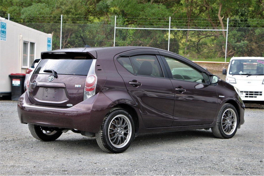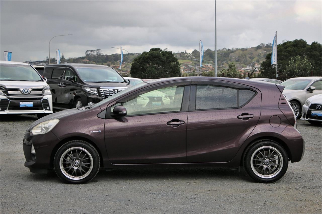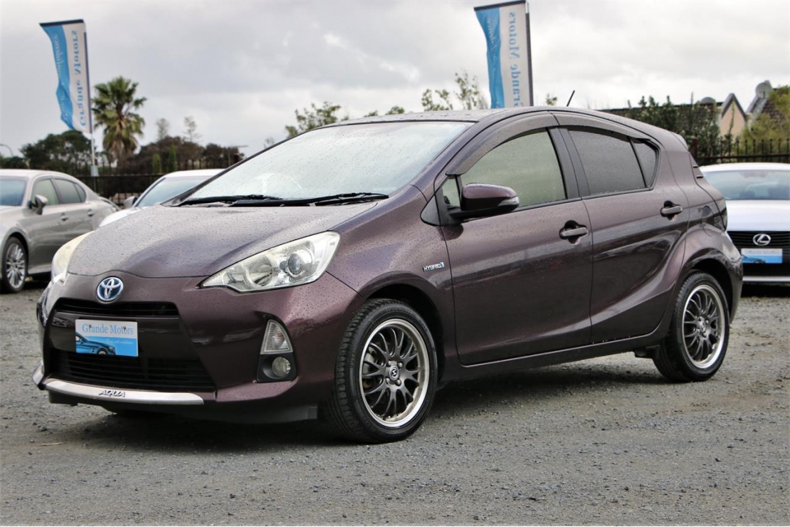 2014 Toyota Aqua G model in purple colour with black leather interior.
