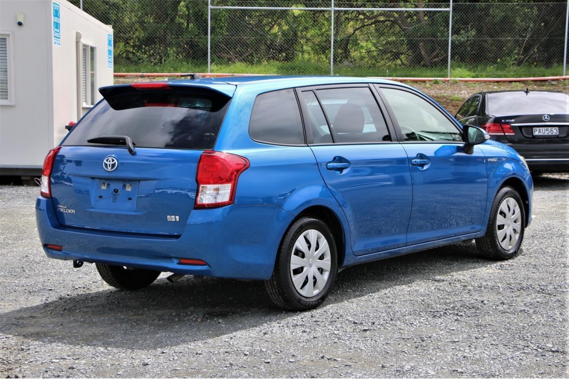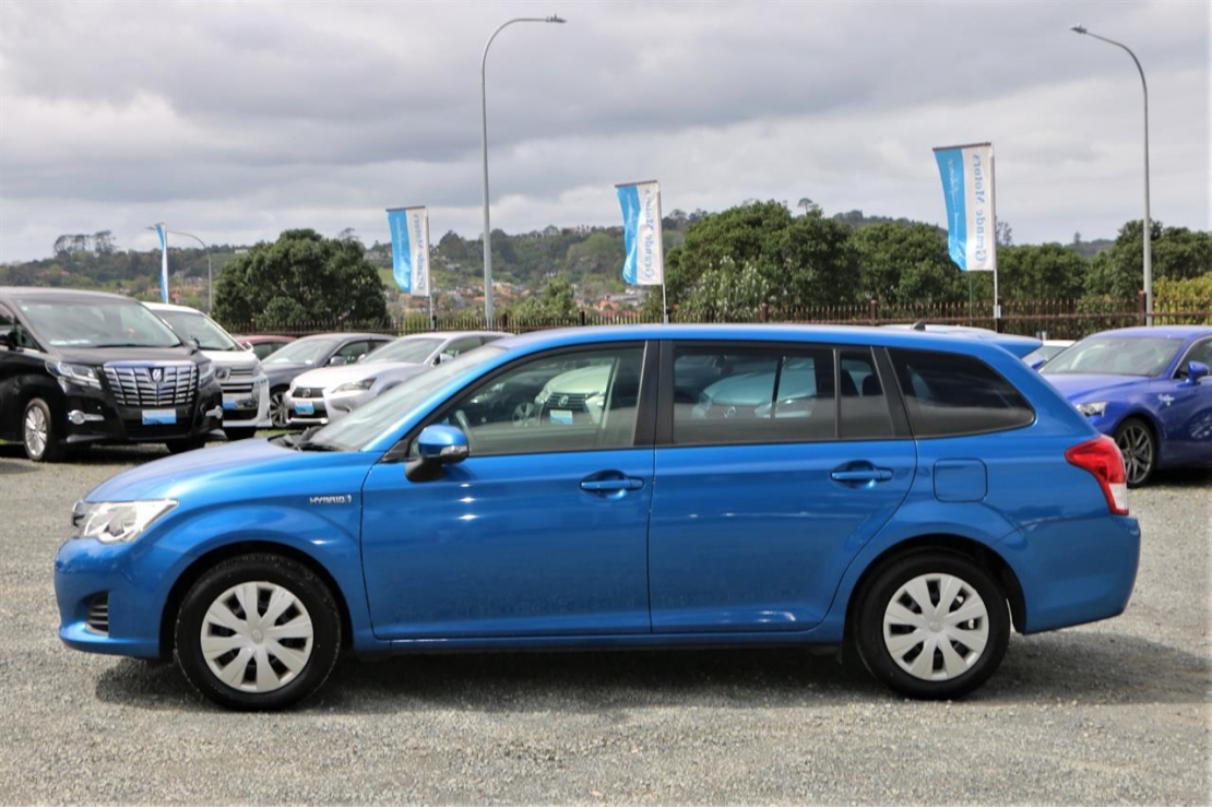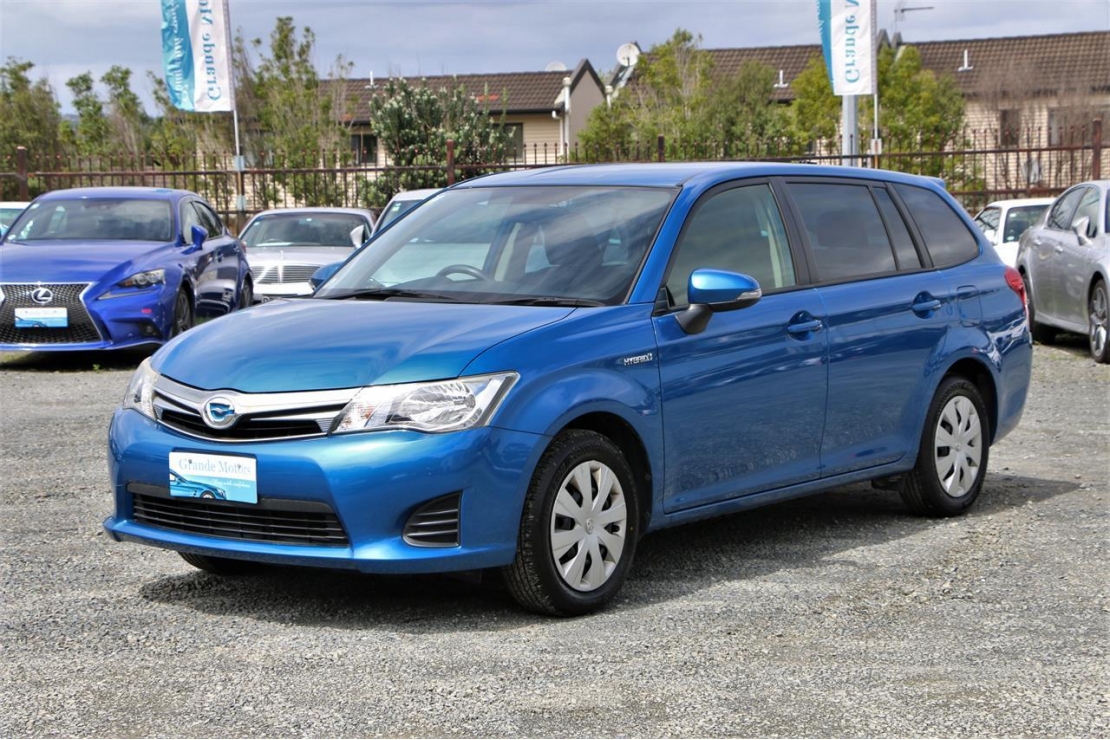 2014 Toyota Corolla Fielder Hybrid in Blue colour with dark interior.