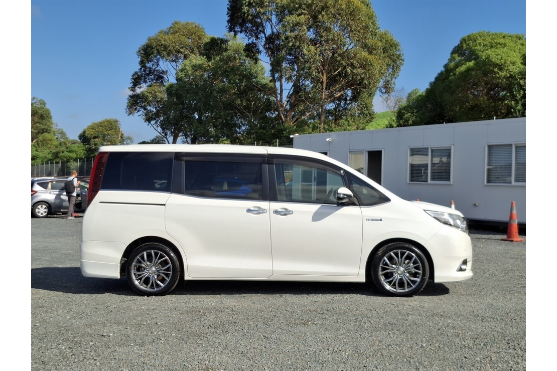 2015 Toyota Esquire Hybrid 7 seater in white colour with black interior.