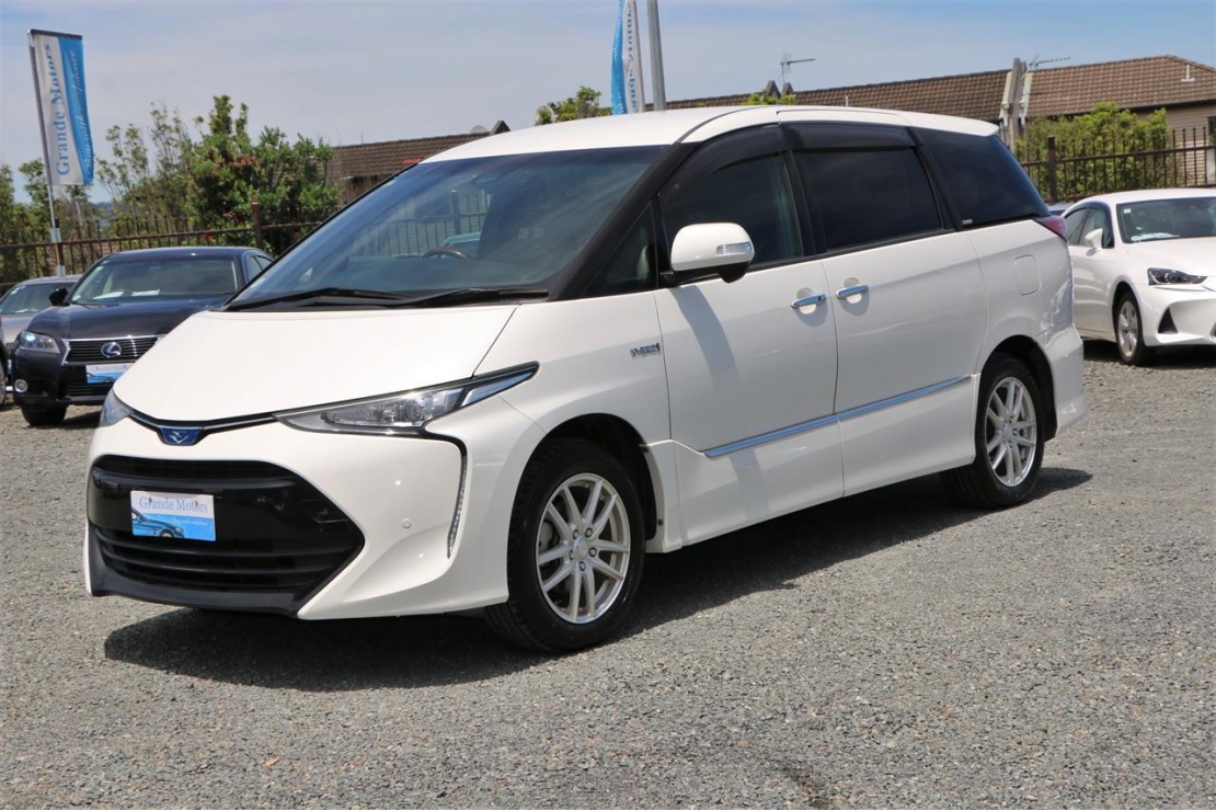 2016 Toyota Estima Aeras Premium E-Four hybrid 7 seater in pearl white colour.