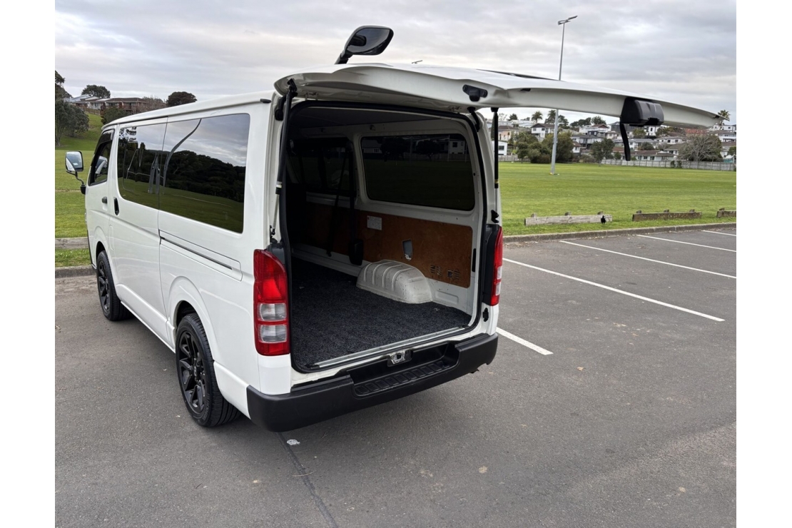 Finished with a modern look thanks to 18" blacked-out alloys, it also features a sliding side door for easy access. Inside, the spacious cabin is fitted with front and rear air conditioning to keep all passengers comfortable. With low kilometres and late-model styling, this Hiace is a tidy, dependable choice ready for everyday use.